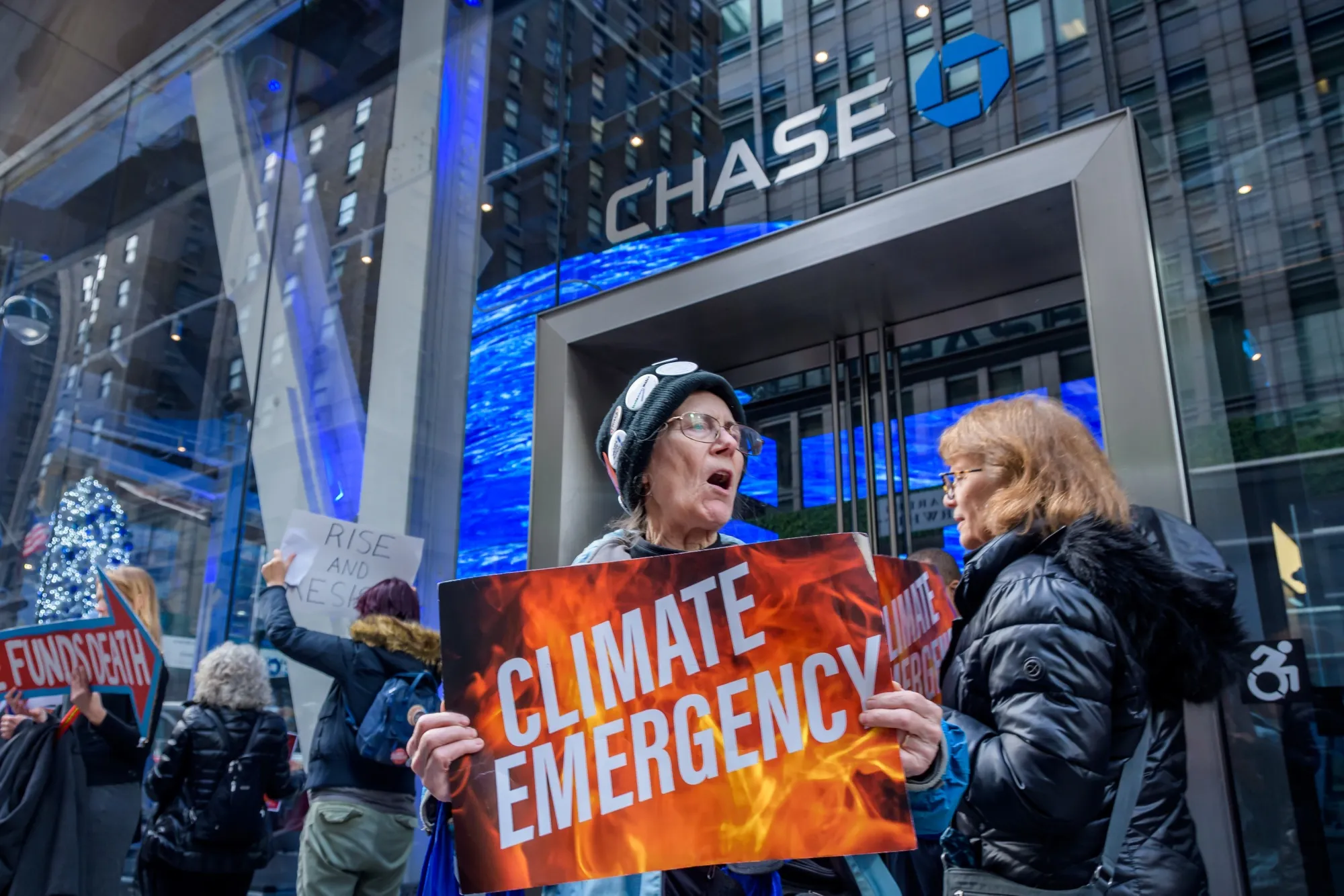 2019年11月20日,纽约JPMorgan Chase外的抗议者。摄影师:Erik McGregor/LightRocket通过Getty Images“这将是一个重要时刻,”多数行动的执行董事Eli Kasargod-Staub说。“所需与JPMorgan的行为之间的差距是令人震惊的。”