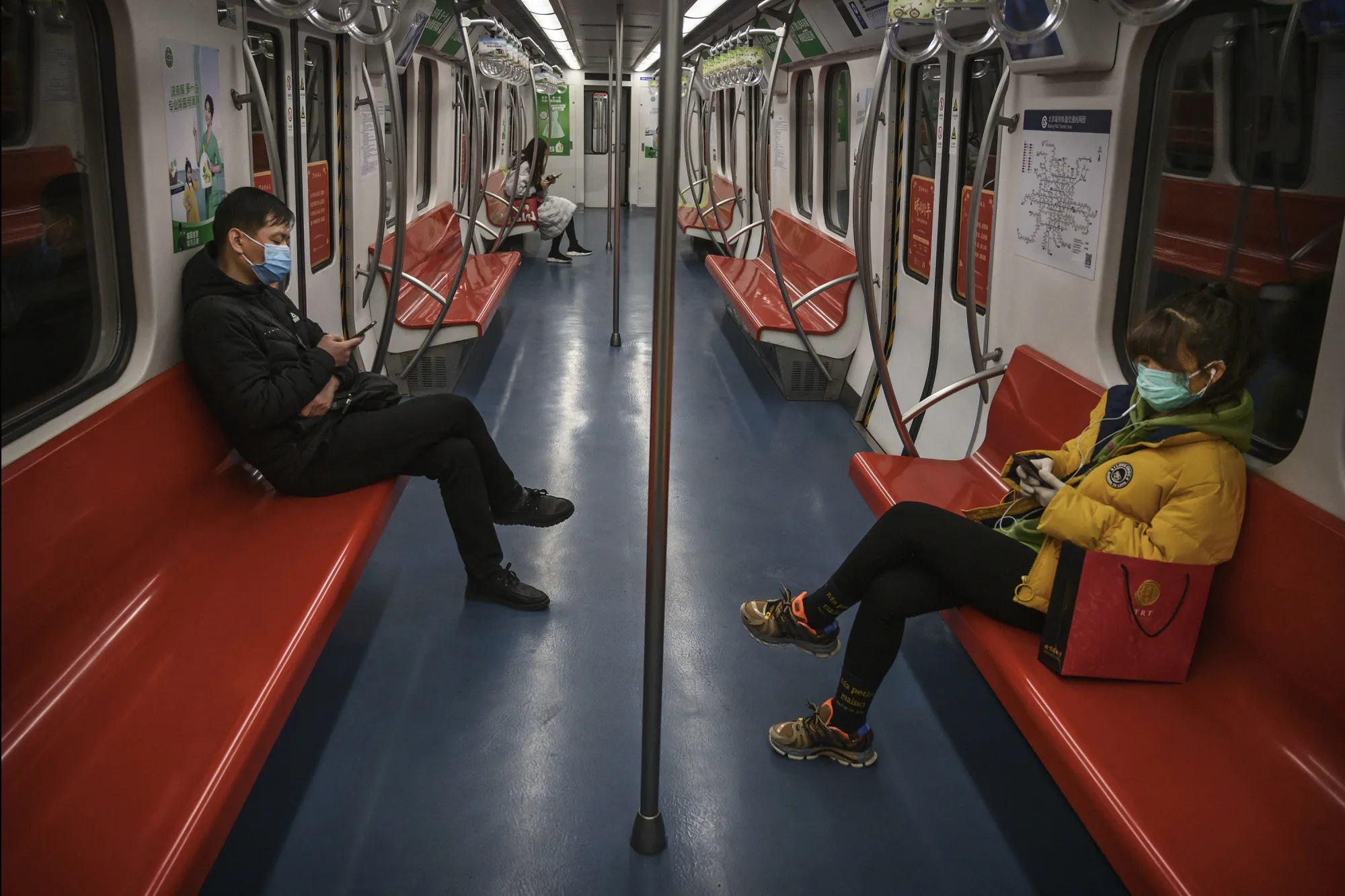 人们在2020年2月10日的晚高峰期间,在几乎空荡荡的地铁车厢内佩戴防护口罩。摄影师:Kevin Frayer/Getty Images北京的政策制定者担心这些措施将加剧疫情带来的经济痛苦,而对抗病毒的效果却微乎其微。因此,他们敦促地方官员更加谨慎,并下令撤回过度的措施。