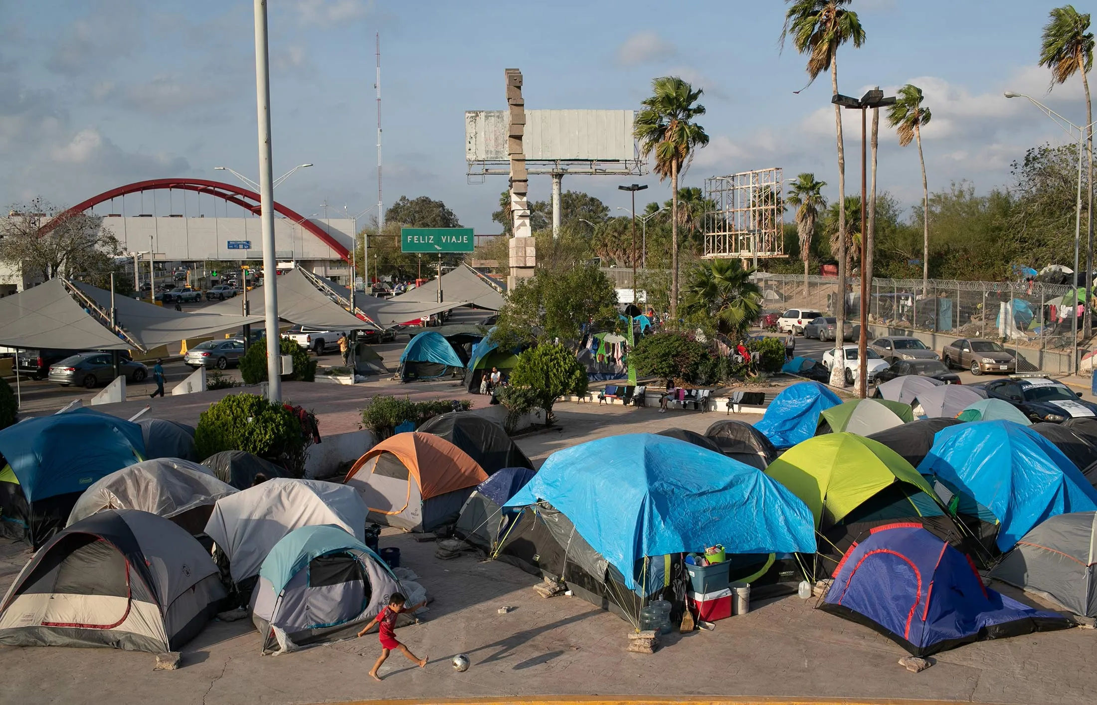 这一场景是由于一项限制寻求庇护理由的政府政策所导致的。寻求庇护者现在必须留在边界的另一侧,等待他们的申请在美国系统中处理。在美国一侧还有另一个帐篷城市,那里设有移民法庭。在接下来的几天里,我们与许多中美洲人交谈——危地马拉人、萨尔瓦多人、洪都拉斯人——他们分享了相似的、虽然无法验证的故事。基本上,他们是为了逃避暴力帮派和腐败当局而逃离的。一个六口之家在被要求出售他们16岁的女儿的第二天逃离了他们在萨尔瓦多的村庄。
