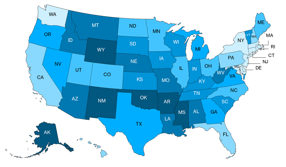 在密西西比州,生活在城市地区的人口不到一半,FCC的覆盖率被高估了20%。同样,在阿肯色州,56%的人口是城市居民,覆盖率被高估了23%。与此同时,在加利福尼亚州和马萨诸塞州等城市比例超过90%的州,FCC与Broadband Now的覆盖估计之间的差距保持在5个百分点以内。