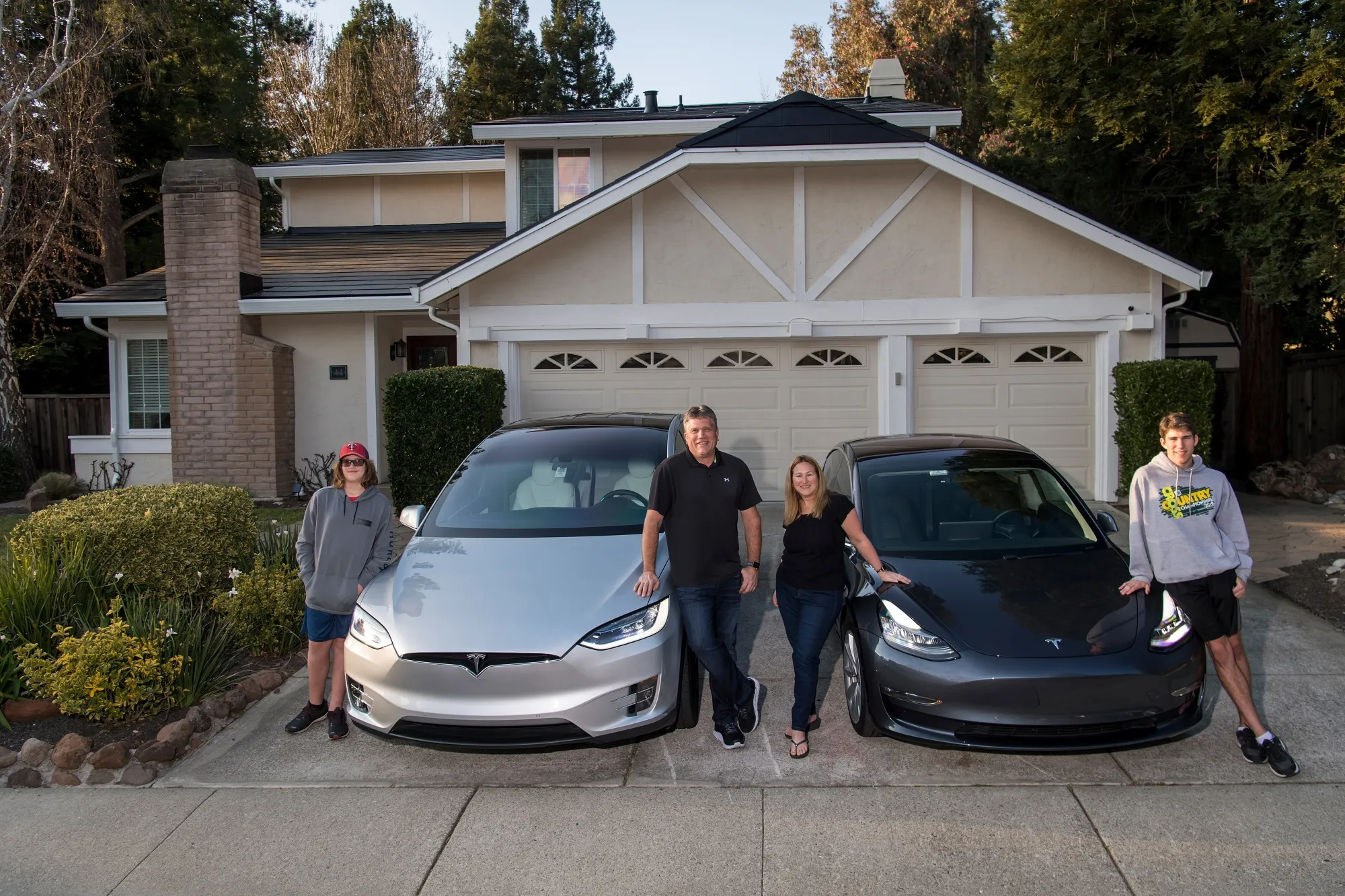 摄影师:大卫·保罗·莫里斯/彭博社埃里克和塔拉·诺伊曼完全投入到特斯拉公司。在2018年夏天,他们购买了一辆电动Model 3轿车,车牌号为800DAYZ,意指他们等待这辆价值52,000美元的电动车,支付了1,000美元的定金后。那年12月,他们以大约69,200美元的价格购买了一辆二手Model X SUV。几周前,他们成为加利福尼亚州旧金山湾区首批安装特斯拉最新版本太阳能屋顶的家庭之一。屋顶系统配备了两个被称为Powerwalls的特斯拉家用电池,费用为83,000美元,通过公司融资。