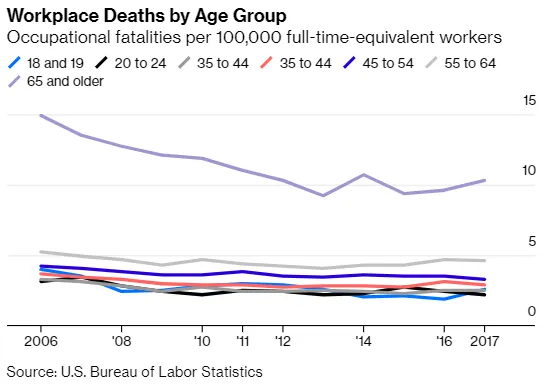 美国劳动力正在变得越来越老,而年长的工人面临更高的职业致死风险。什么样的事故最有可能导致他们的死亡?正如贾斯廷·福克斯在彭博社观点中解释的那样,“老年农民在他们的拖拉机或皮卡翻倒时死亡。”