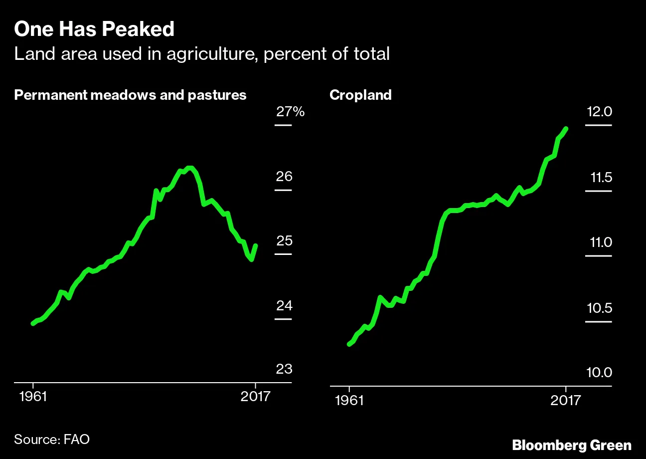 彭博社绿色英国在洪水后几天内准备迎接大雨和强风海伦让美国南部因洪水和停电而震惊约翰飓风在墨西哥海岸留下毁灭的痕迹尼泊尔的洪水和山体滑坡造成数十人死伤失踪来自联合国粮农组织的数据表明,“永久草地和牧场”的面积——也就是用于放牧牲畜的土地——在千年之初达到了峰值。从那时起,我们减少了用于放牧的土地面积,占全球总土地面积的1.2%。与此同时,耕地面积持续增加,但不足以抵消下降的趋势。