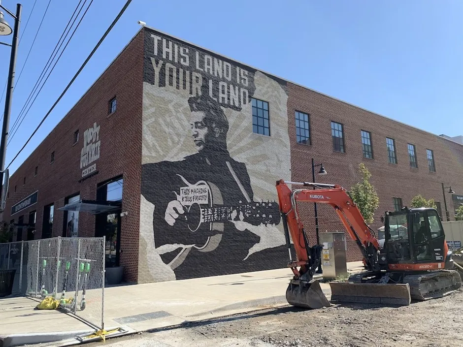 在万圣节前的一个温暖星期四晚上,数十个家庭聚在一起观看在塔尔萨艺术区乔治·凯泽家庭基金会资助的公园项目古斯里绿地的 哈ocus Pocus 放映。在一个角落,坐落着伍迪·古斯里中心,墙上有一幅古斯里抱着吉他的壁画,上面写着“这台机器杀死法西斯”。它的入口被青柠电动滑板车框住,旁边的街道正在施工。附近有一家酒吧叫 瓦尔基里, 它邀请顾客通过背诵一系列味道形容词来点单,这些形容词会被翻译成定制饮品。到星期六早上,绿地上的家庭被几位流浪居民取代,他们在街区游荡,乞讨零钱。