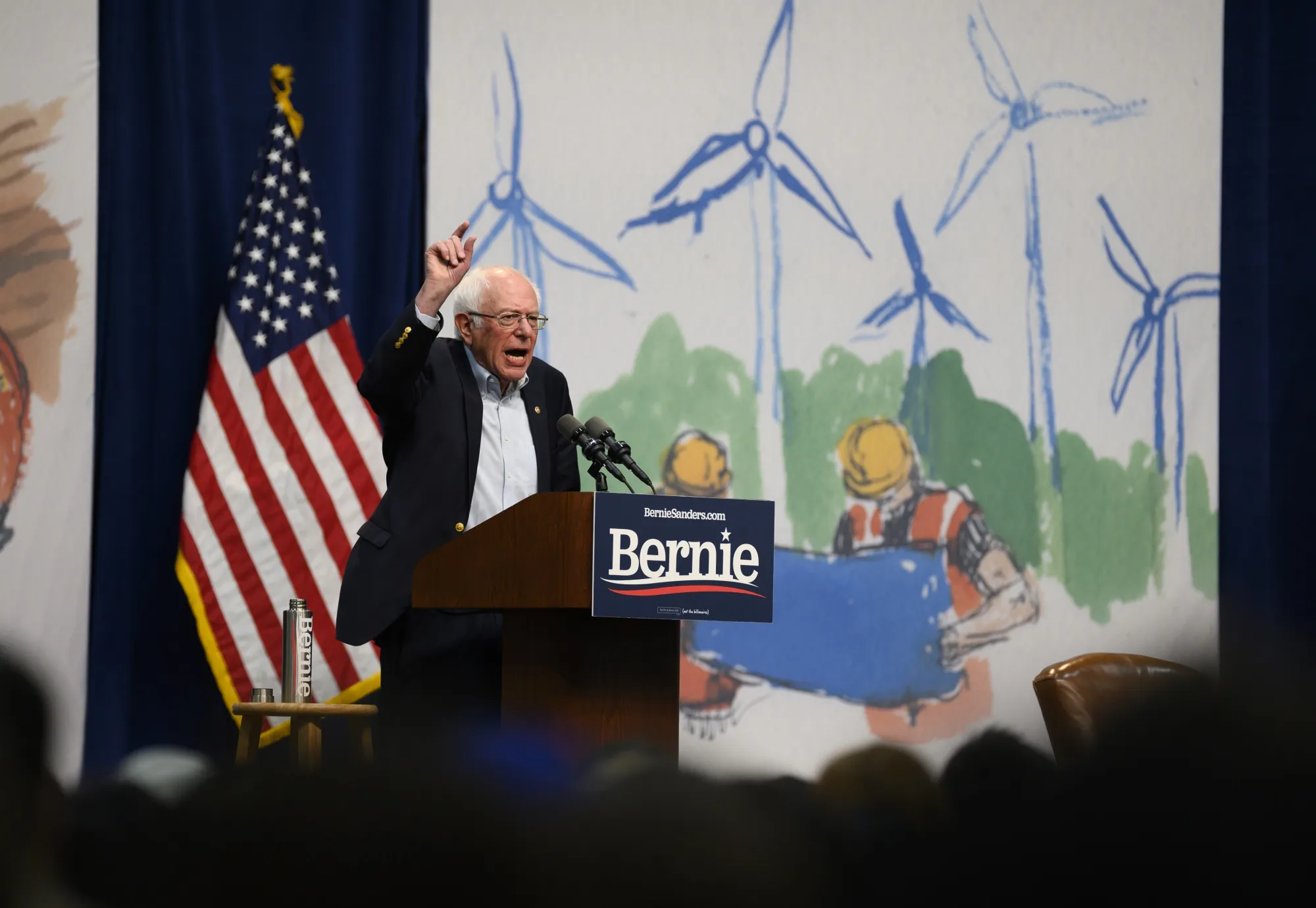 民主党总统候选人伯尼·桑德斯在2019年11月9日于爱荷华州德雷克大学举行的气候危机峰会上发言。摄影师:斯蒂芬·马图伦/盖蒂图片社### 核选项