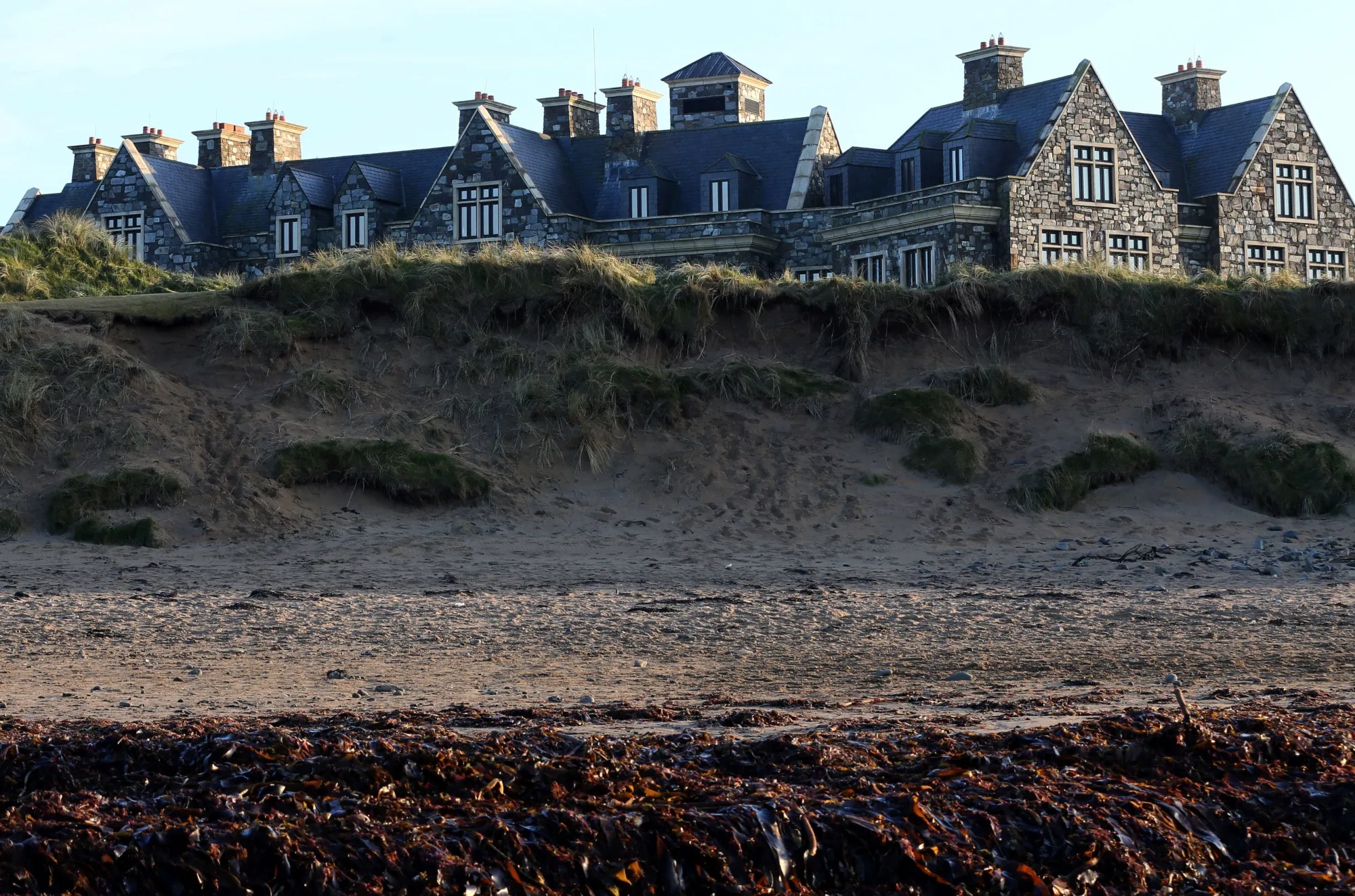 在爱尔兰西海岸的特朗普杜恩贝格高尔夫球场,海洋正逐渐逼近俯瞰第18洞的私人酒吧。自2002年开业以来,冲击在果岭边缘的海浪每年吞噬约一米的沙滩。