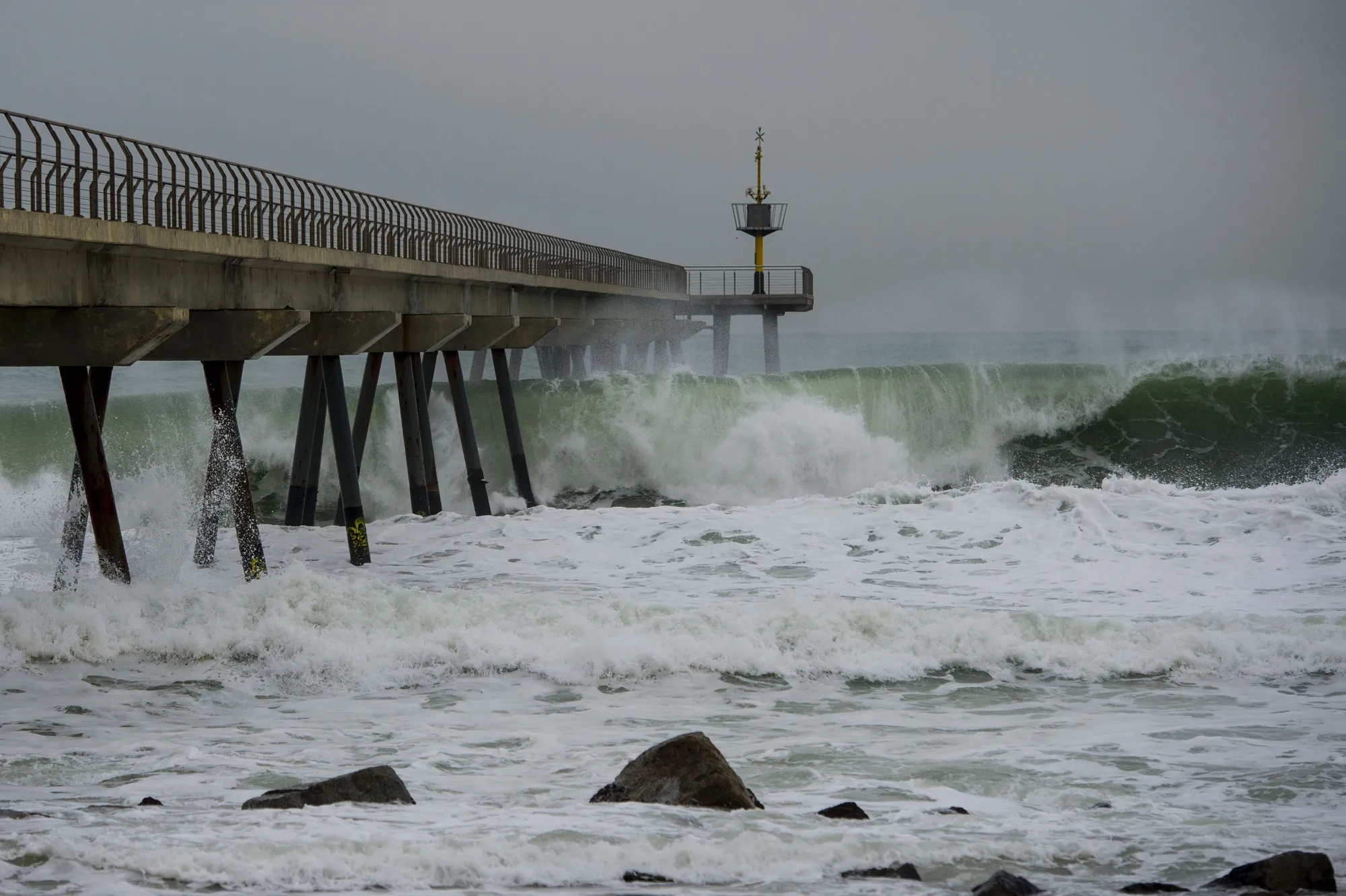 波浪在2016年冲击西班牙巴塞罗那附近的佩特罗利桥,直到2020年被格洛丽亚风暴摧毁。摄影师:Josep Lago/AFP via Getty Images