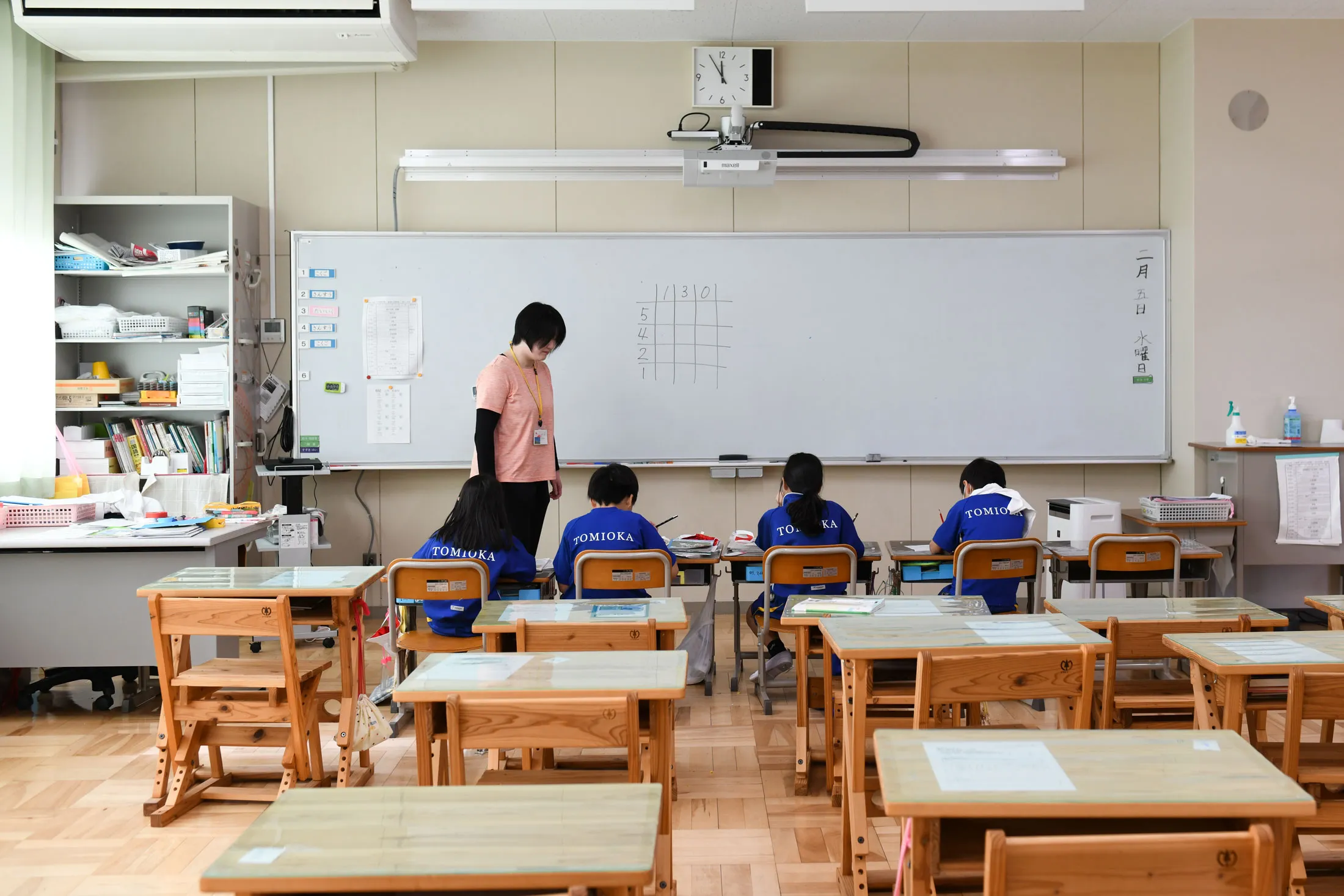 一位老师在富冈小学的教室里教授一年级和二年级的学生。摄影师:林纪子/彭博社渡边看到了可再生能源的巨大潜力。他希望有一天,该地区的太阳能农场将全部由居民接管,吸引更多家庭回家。“这个城镇是一个理想的居住地,”他说。“我希望居民能从避难所返回这里。我想帮助他们回归。”