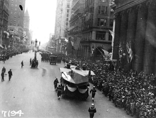 1918年,海军航空工厂的花车在费城的自由贷款游行中经过人群,这在加剧该市的流感疫情中发挥了作用。美国海军历史与遗产司令部照片一百年前,游行与疫情结合的致命性悲惨地显现出来。1918年9月28日,随着第一次世界大战的结束,约20万人涌上费城的街道,参加一场旨在筹集2.59亿美元政府债券以帮助资助美国战争努力的爱国游行。但美国刚刚经历了第一波 致命的流感疫情,并且正处于第二波的开始。