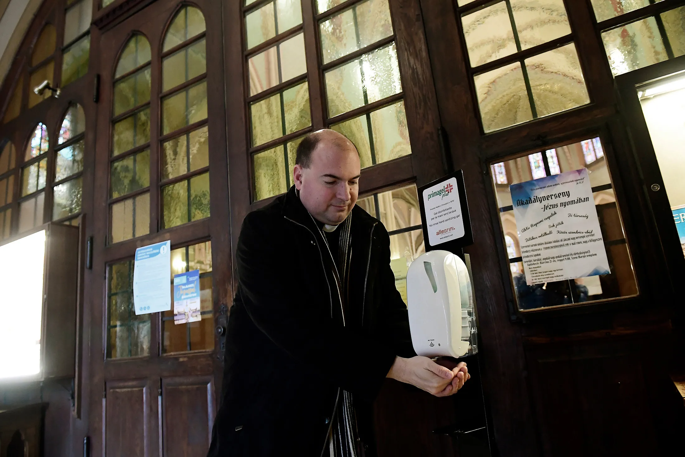 拉兹洛·莫诺斯托里神父在布达佩斯的阿尔帕德之家圣玛格丽特天主教堂使用洗手液。摄影师:塔马斯·科瓦奇/MTI/AP照片一个宗教团体在韩国与病例激增有关。一些教堂在新加坡也被确定为冠状病毒聚集地,许多会众现在已将活动转移到线上。员工在线上履行牧灵关怀和行政职责。圣经学习、讲道和一些小组会议已转移到Zoom、Google Hangouts和Facebook Live等平台。新德里的阿克沙尔达姆印度教寺庙的员工被要求每天洗手六到八次。该寺庙每天接待多达10,000名游客。