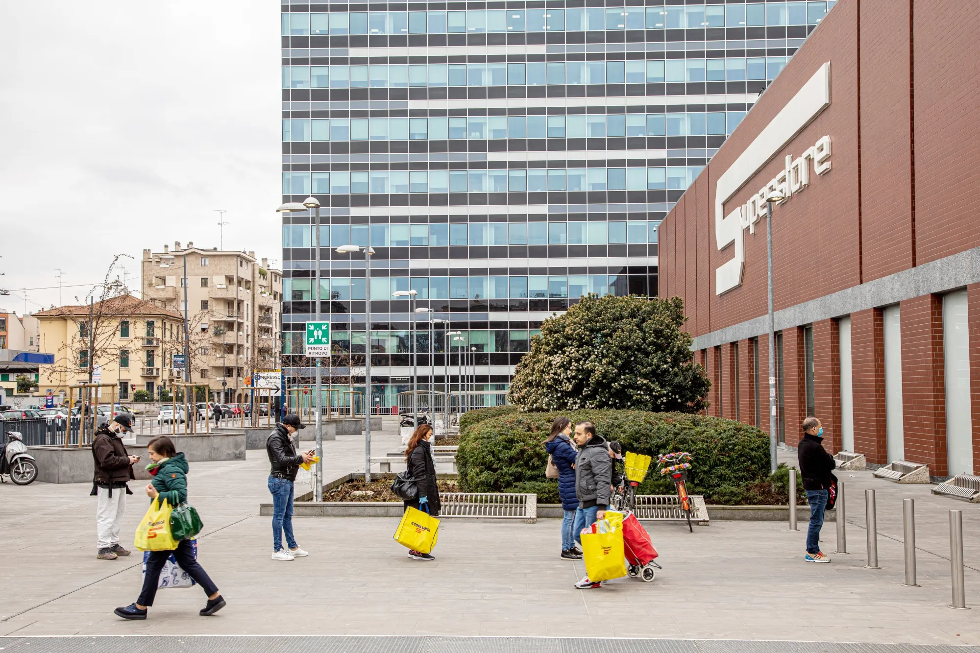 购物者在等待进入米兰超市时保持谨慎的距离。摄影师:阿尔贝托·贝尔纳斯科尼/彭博社这种恐惧导致了杂货配送服务的突然繁荣。在孔特宣布全国封锁的第二天,罗马超市的入口被骑自行车的快递员挤满,他们大多是来自非洲和南美的移民,争抢订单。到那时,米兰已经形成了一个家庭配送的常规,居民们等待超过一周才能获得购物的时段。