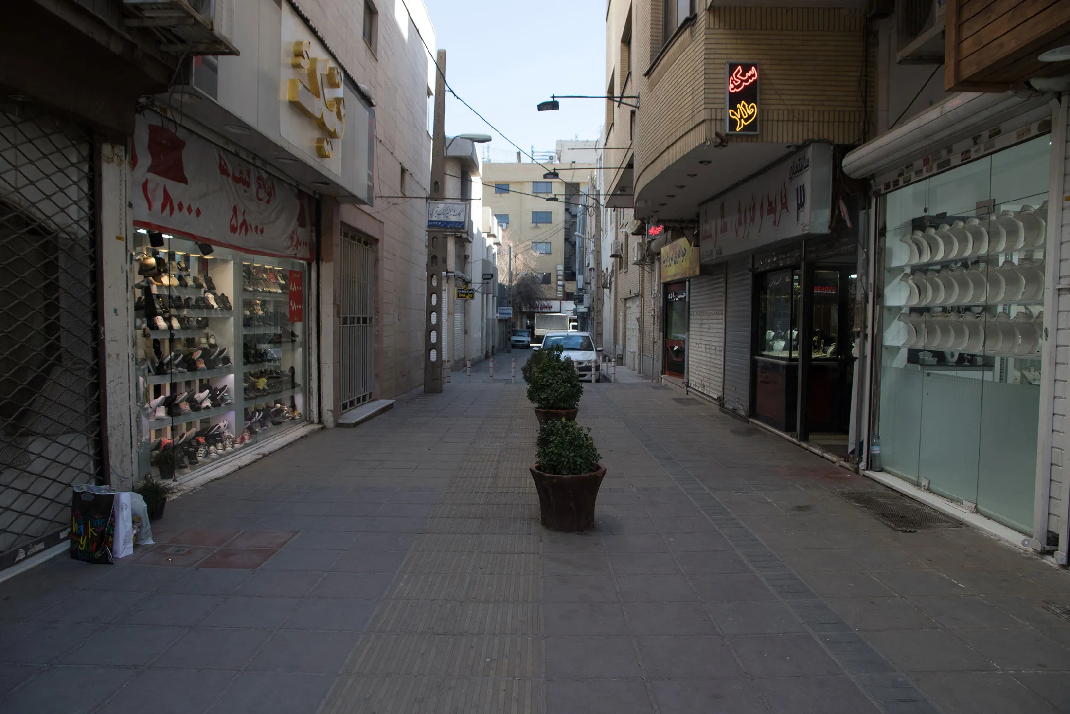 摄影师:阿敏·霍斯罗沙希今年3月21日之前的日子本应是德黑兰及伊朗其他地方的购物者忙碌的时刻,为诺鲁兹(波斯新年)做准备,这是商人和店主最繁荣的时光。但在首都,行人稀少。一些外出的人戴着口罩和手套,但其他人似乎对防护措施漠不关心。餐馆和咖啡馆空无一人;而糖果店——通常挤满了为新年购买糖果和甜点的人——则显得荒凉、冷清,几乎赤裸,因为明亮的灯光透过高大的窗户照射进来,暴露出一盘盘未售出的糕点、坚果和巧克力。