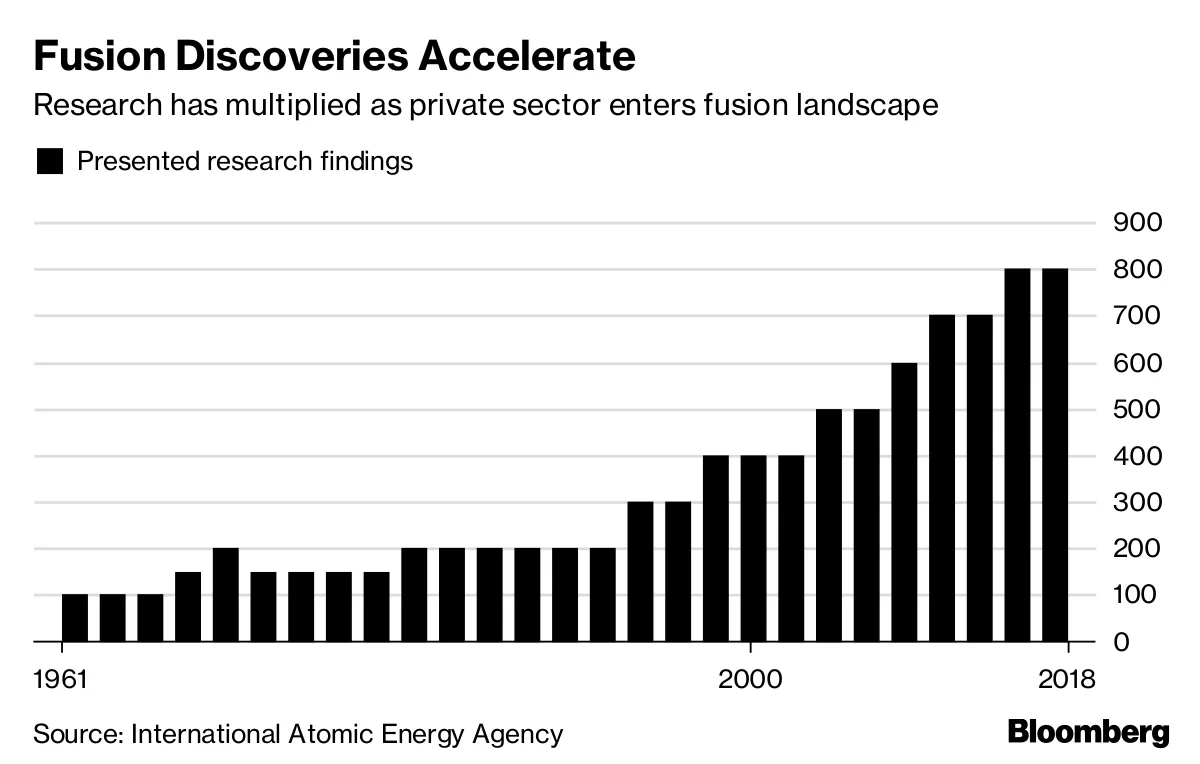 大约有二十多家私营公司在追逐许多人认为是终极的无碳能源来源。核聚变反应堆可以通过将氚和氘原子结合在一起,产生超过太阳温度的热量——超过1亿摄氏度。
