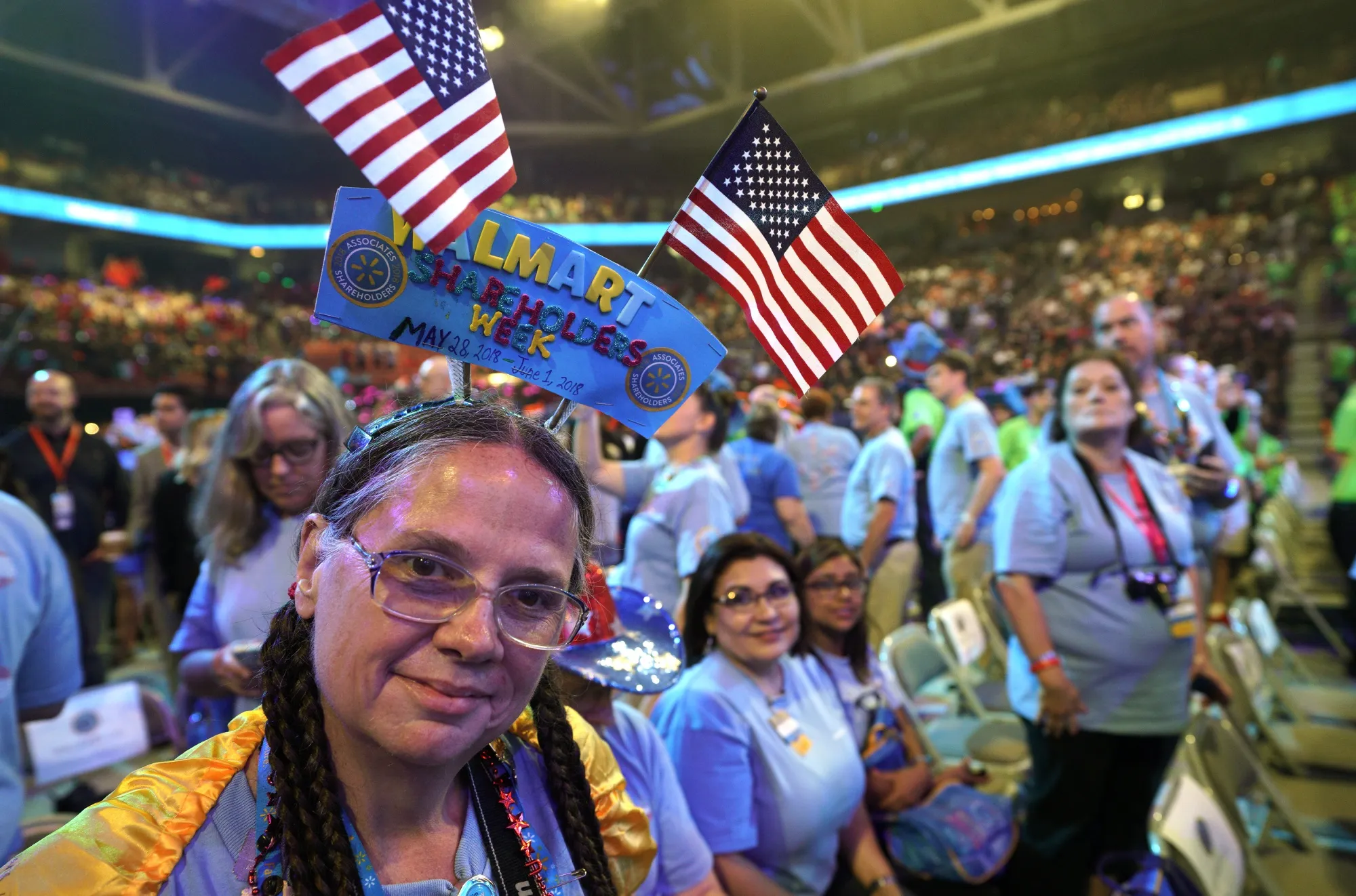 沃尔玛员工在2018年6月1日阿肯色州费耶特维尔的年度股东大会上。