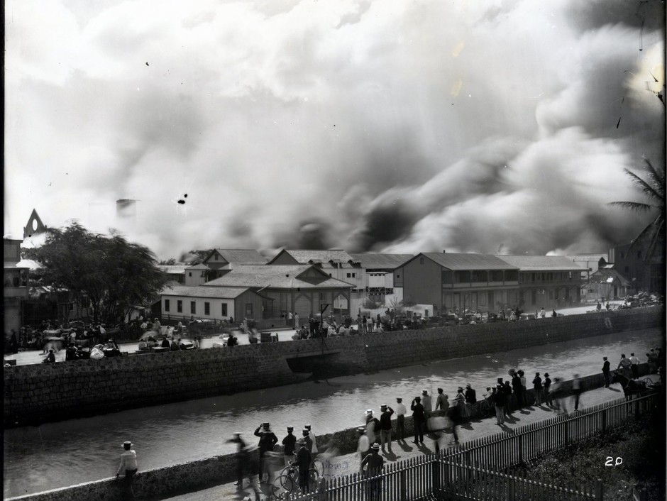 卫生委员会还试图通过火焰进行消毒,焚烧瘟疫受害者死亡的建筑。1900年1月20日,一场控制燃烧失控,吞噬了檀香山五分之一的建筑和5000人的家园。前来围观火灾的白人居民也聚集在一起,手持棒球棍和撬棍,以确保火灾受害者最终被送往严格控制的难民营。