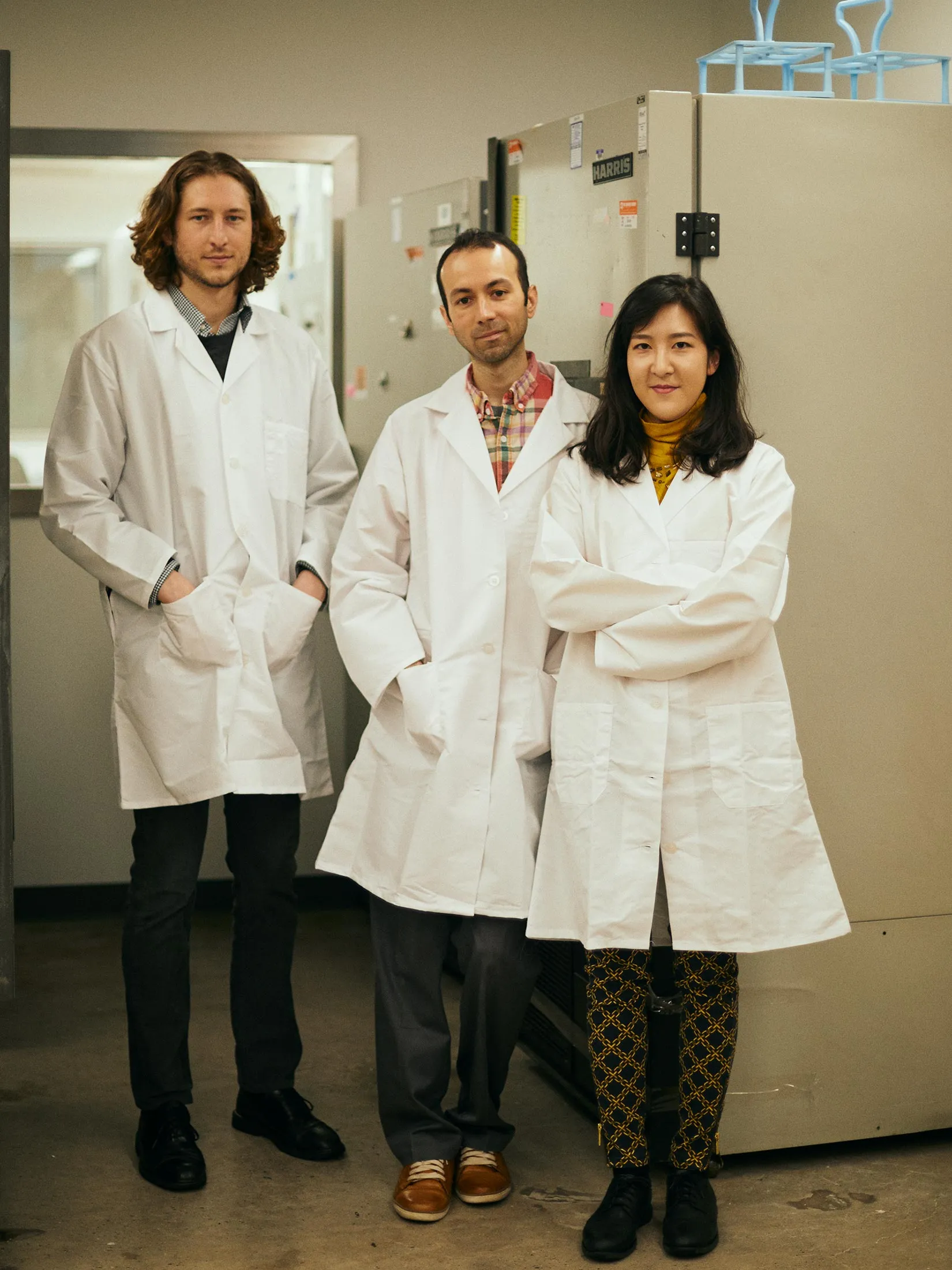 亚历杭德罗·查韦斯,中心,与博士生塞缪尔·雷斯尼克和黛比·洪。摄影师:萨曼莎·卡索拉里,彭博商业周刊在三月初的一个早晨,在纽约市开始 关闭之前,Ho花了一些时间谈论他实验室正在进行的工作。他穿着西装,尽管他看起来非常舒适,但他通常会穿牛仔裤。他会很忙,但他的电话不会一直响。他不会与大学董事会会面,也不会为NBA提供建议,或者与中国疾病控制和预防中心的负责人进行磋商,或者出现在 Rachel Maddow Show上。他会期待他的员工已经拆开了他们的搬家箱子。