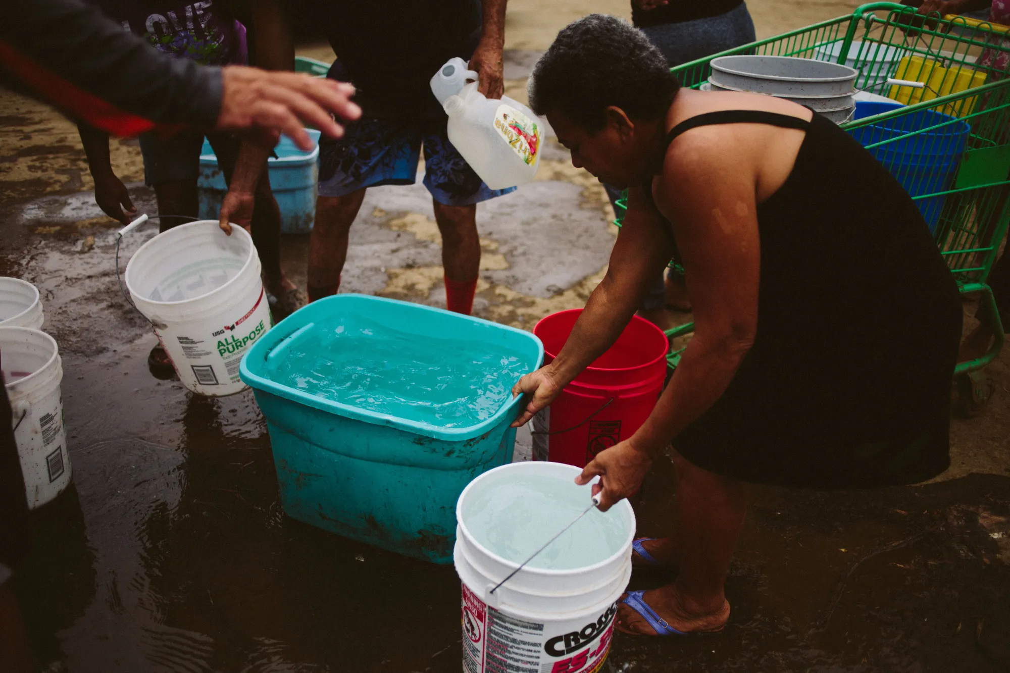 2017年9月30日,波多黎各科罗萨尔,飓风玛丽亚后,装满水的人桶。摄影师:约翰·塔格特/彭博社错过人员配置目标的后果在2017年特别严重的风暴季节后变得明显。根据乔治·华盛顿大学米尔肯公共卫生学院的一项研究,那一年飓风玛丽亚摧毁了波多黎各,造成2,975人死亡。FEMA在物资和人员方面都显得准备不足。FEMA在次年发布的事后报告承认,该机构“将员工安排在超出其经验的职位,有些情况下甚至超出了他们的能力。”