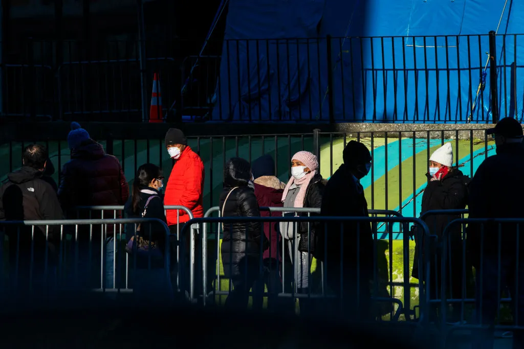 人们在2020年3月24日排队在埃尔姆赫斯特医院进行新冠病毒检测,地点位于纽约市的皇后区。(照片由爱德华多·穆尼奥斯·阿尔瓦雷斯/盖蒂图片社提供)