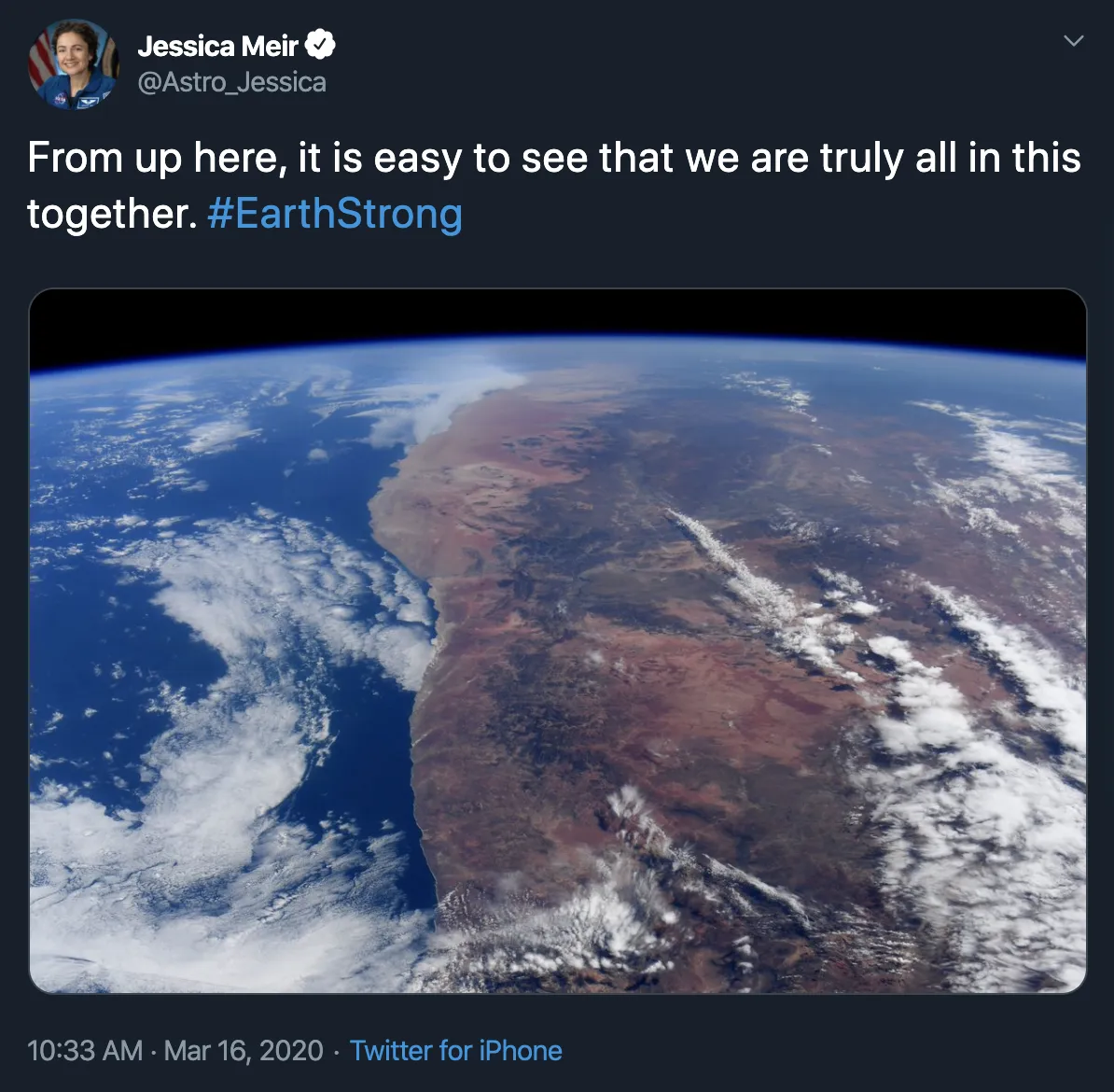 **来自太空的爱。**随着新冠疫情迫使我们许多人自我隔离并在家工作,研究仍在继续,为NASA宇航员在国际空间站提供支持,他们为人类提供了他们的建议和支持。