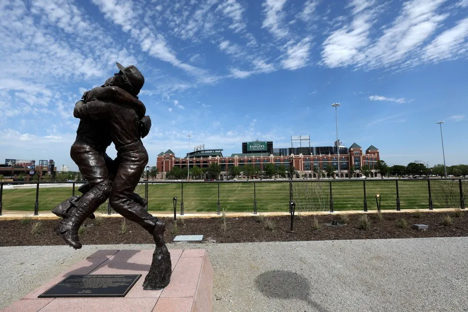 “前往世界大赛”,由哈里·韦伯创作的雕塑,矗立在德克萨斯州阿灵顿的环球生命公园前。游骑兵队将推迟2020年3月31日环球生命球场的首次开幕,俱乐部的新公园。罗纳德·马丁内斯/盖蒂图片社在3月12日,大联盟宣布2020赛季将至少推迟两周。像一些最近提出的其他截止日期,这看起来过于乐观。尚未宣布进一步的日期。