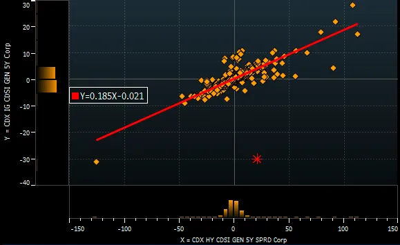 但一开始,这只是与美联储一起投资获胜的案例,而 其他一切都在失利。周一还出现了高收益CDX相对于投资级的最异常表现。