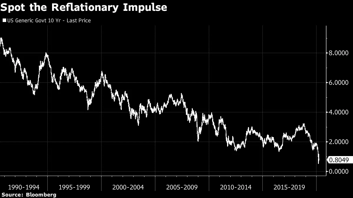 “在美国,我们看到10年期国债收益率降至30个基点,并在年底时达到65个基点,因为美联储购买了大量净发行以支持经济,”TD证券的Priya Misra写道。“由于我们预计美联储在2021年之后才会加息,因此我们预计10年期国债收益率将在2021年保持在1%以下。”