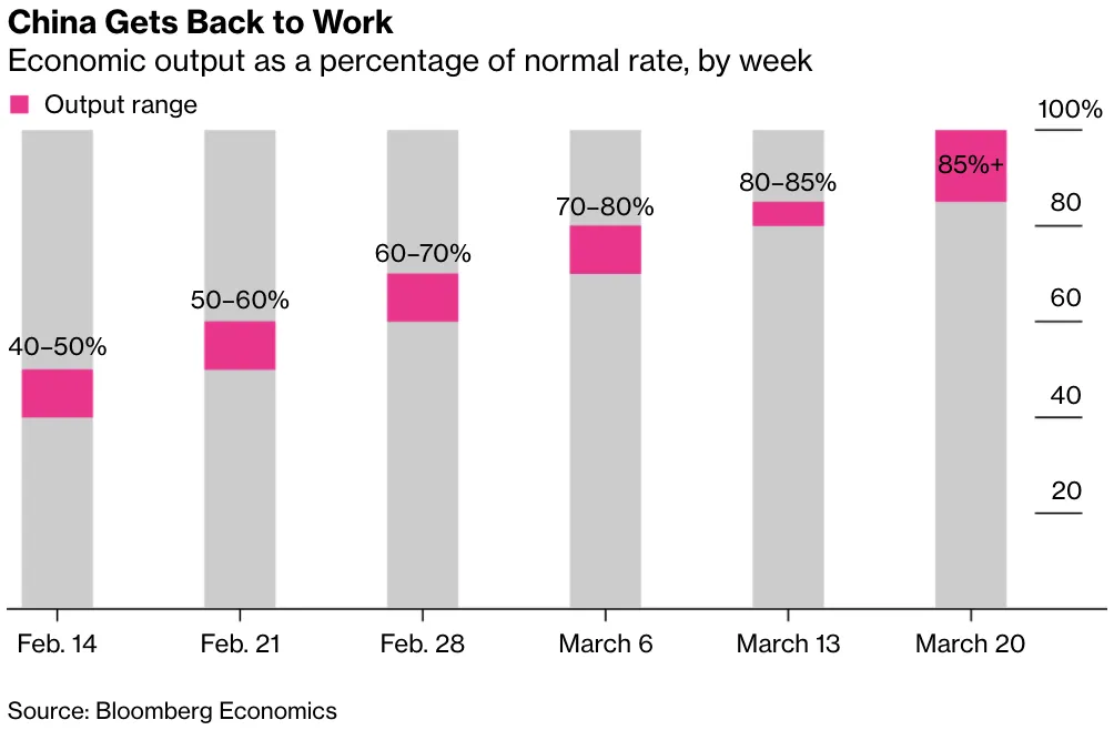 中国各地的地方官员已经开始放宽社交聚会的限制,甚至鼓励人们外出就餐。购物中心已经重新开放,房地产交易有所回升,工厂也开始重新运转。