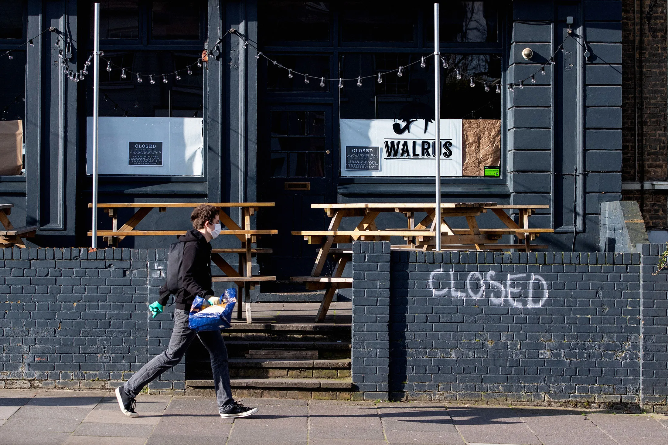 在伦敦南部的新十字区,一家关闭的酒吧,因政府因冠状病毒疫情下令关闭酒吧、俱乐部和餐馆。