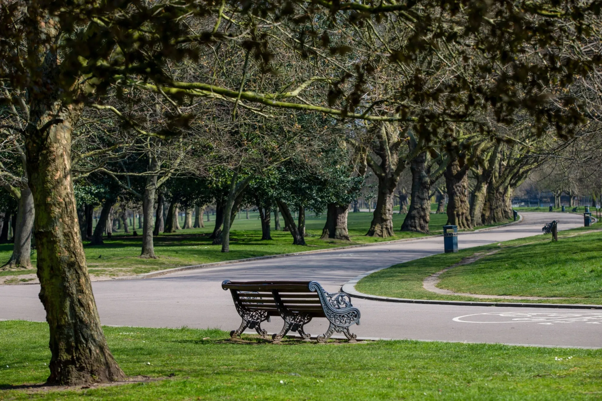 2020年3月27日,星期五,英国伦敦东部的维多利亚公园内,一条小路空无一人。