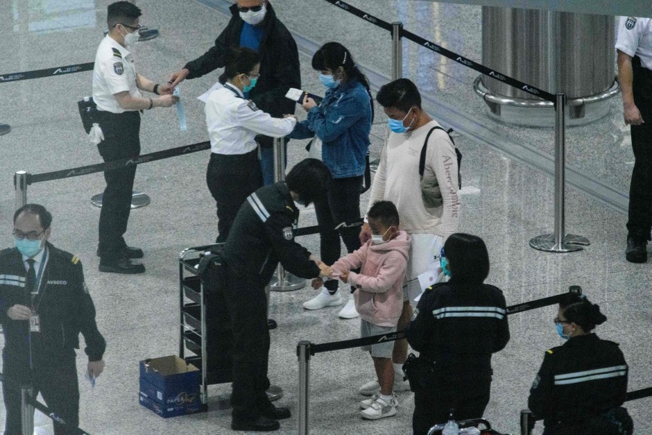 抵达香港机场的旅客会收到为期两周的自我隔离追踪手环。安东尼·华莱士/法新社通过Getty Images3月25日,香港关闭了对非居民的边界,以抵御由外国游客带来的第二波Covid-19病例。自1月23日首次确诊冠状病毒病例以来,该地区成功遏制了病毒的传播。被确认。