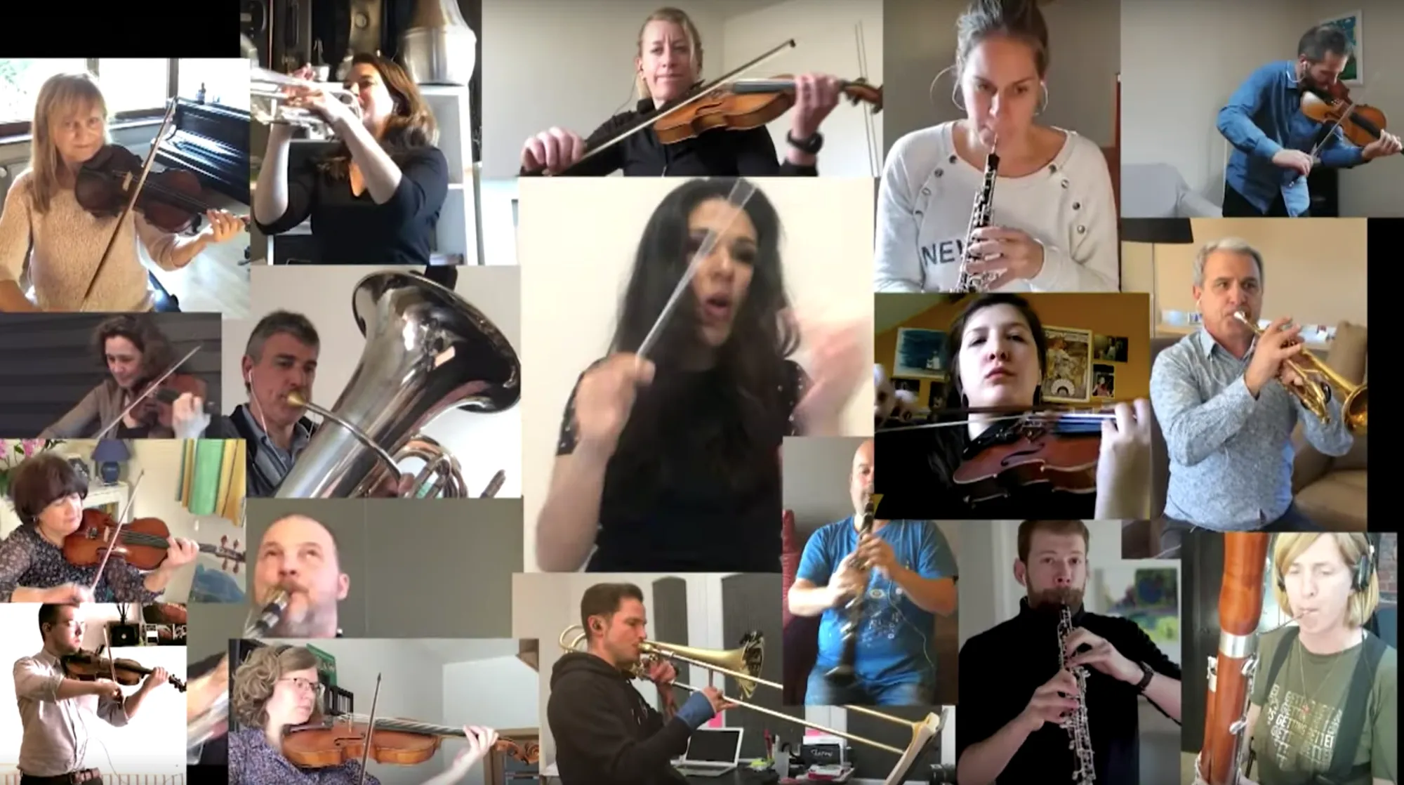 **和谐隔离。**随着全球管弦乐团适应封锁生活,一些像安特卫普爱乐乐团的乐团正在远程重聚,将弦乐、木管乐器和铜管乐器编织成强大的家庭音乐会。