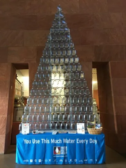 来源:谷歌2019年8月,亚利桑那州市政水用户协会在凤凰城的主要入口处建造了一个16英尺高的水壶金字塔。目的是向这个沙漠地区的居民展示他们每天使用多少水——120加仑——并鼓励节约用水。