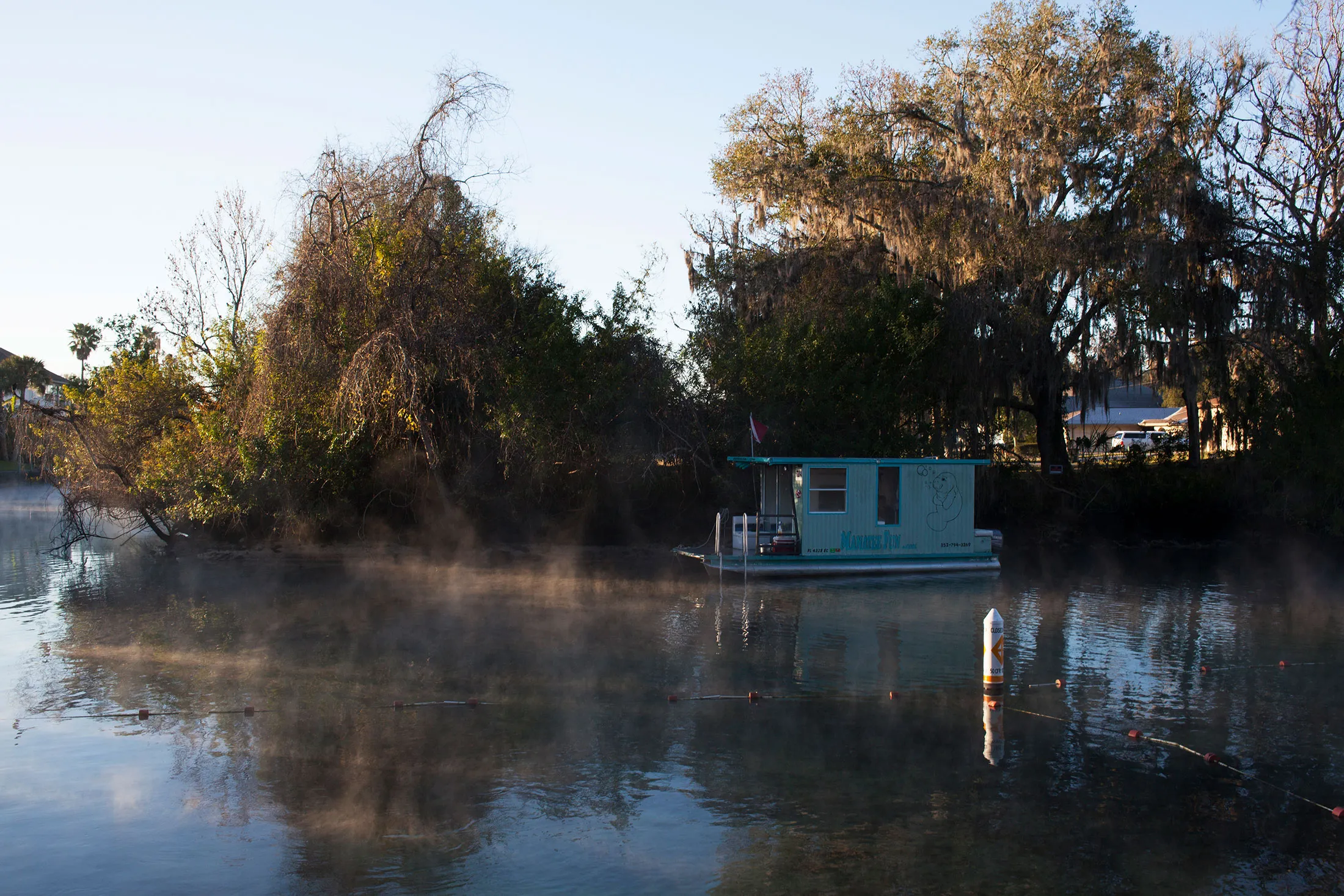 在一月的早晨,我驱车北上近80英里,来到海滨小镇水晶河,那里海牛的形象装饰着市政厅和几乎所有的欢迎标志。自1960年以来,冬季海牛的数量从几只增长到超过600只。最初,它们是被一座燃煤电厂吸引,但最终排放物更多地成为了通往河流的中途停留,而现在这里是墨西哥湾沿岸最大的自然海牛温暖场所。(该电厂已逐步停用,取而代之的是附近的新天然气设施。)水晶河现在每年吸引超过50万游客,其中许多人参加与海牛共游的旅游活动。