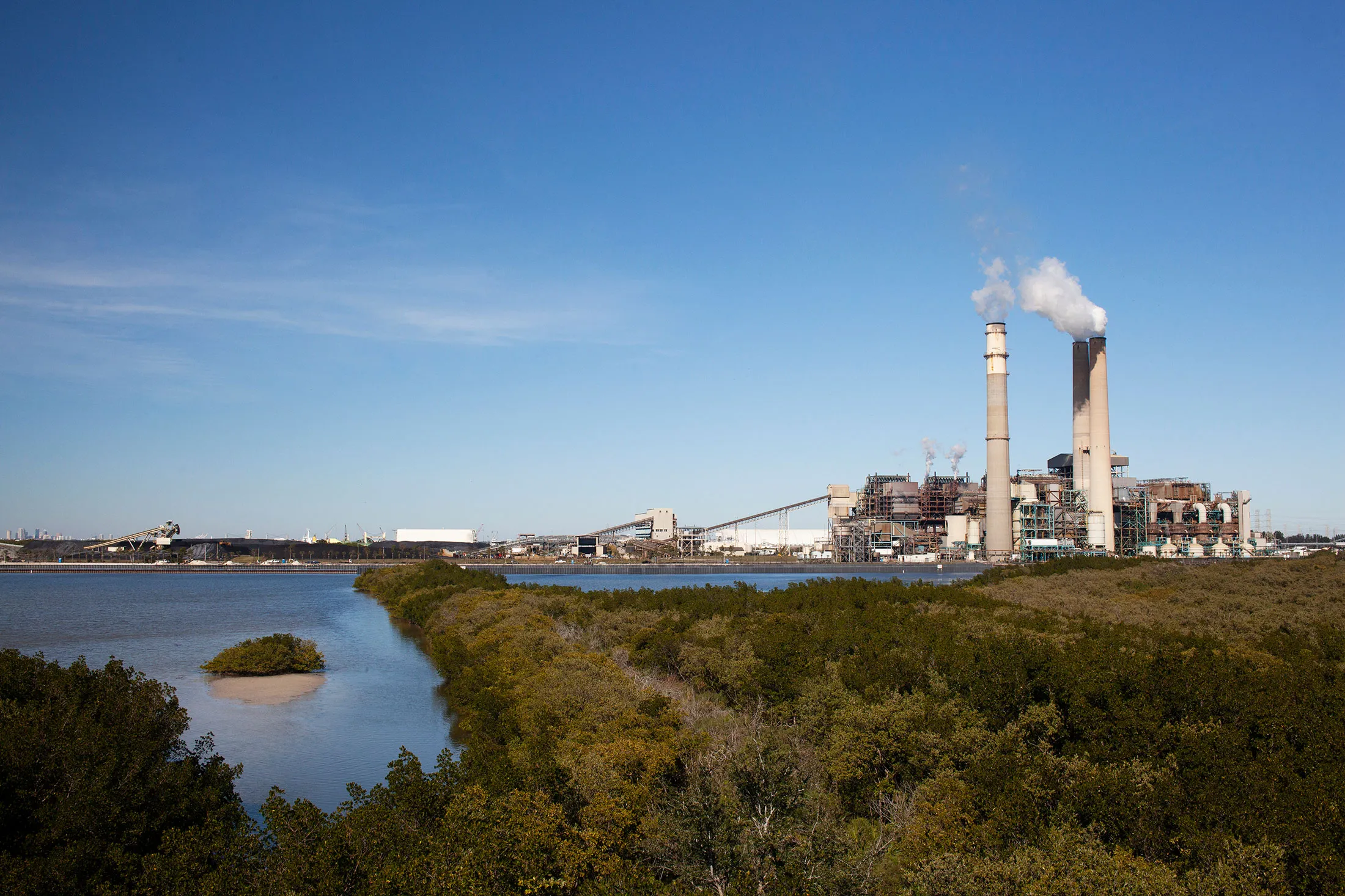“我们遇到过有人说,‘把发电厂建在这个海牛保护区旁边不是很糟糕吗?’”克罗说。“他们完全搞错了。”我们穿过一个水泥人行道,走在红树林的树冠下——该发电厂建在被挖掘的原始红树林沼泽的沿海土地上——直到我们到达一个狭窄的码头,伸入宽如足球场的运河。水道对面是巨大的煤堆。输送带从它们上方蜿蜒而上,将煤块运输到发电厂的四个发电单元,这些单元也由天然气供能,并通过从坦帕湾抽取的水进行冷却。