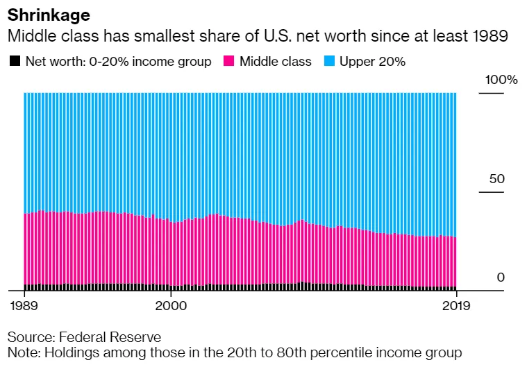 美国中产阶级在这场疫情中面临着比以往任何时候都更小的财富份额。