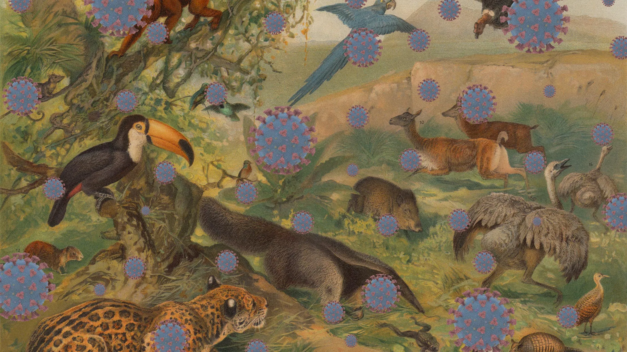 根据 研究,随着人与野生动物之间接触的增加,“病毒溢出风险”也随之上升,该研究由加州大学戴维斯分校的One Health Institute的Christine Kreuder Johnson领导。几乎一半在1940年后从动物传播到人类的新疾病(称为人畜共患病原)可以追溯到 土地利用、农业或野生动物狩猎的 变化。SARS、埃博拉、西尼罗河、莱姆病、中东呼吸综合症等都符合这一特征。可能有10,000种对人类潜在危险的哺乳动物 病毒。