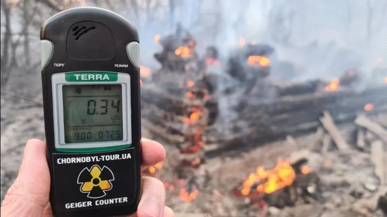 **飙升的后果。**一场小火灾在切尔诺贝利附近使辐射水平达到正常水平的16倍,因为一个异常温暖的冬天将森林禁区变成了干燥的草地。