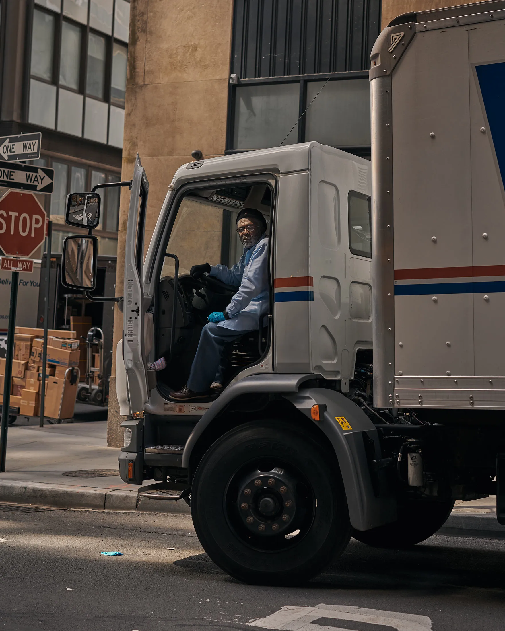 安德鲁·亨利,邮政服务曼哈顿机动车服务部门的管理者,4月7日。摄影师:克里斯托弗·格雷戈里-里维拉为《商业周刊》拍摄布伦南从总部发布命令是一回事,而让管理者执行这些命令又是另一回事。“确实有一些地方信息没有传达到,”全国邮政邮件处理工会的全国主席保罗·霍格罗吉安说。到3月中旬,APWU的史密斯正在拍桌子。他现在说,当他要求手套和口罩时,主管告诉他CDC的指导没有要求这些。“我一直听到的是,‘好吧,CDC要求这个,CDC要求那个,’”史密斯说。“我听厌了CDC的要求。我想听听更多关于常识的事情。”