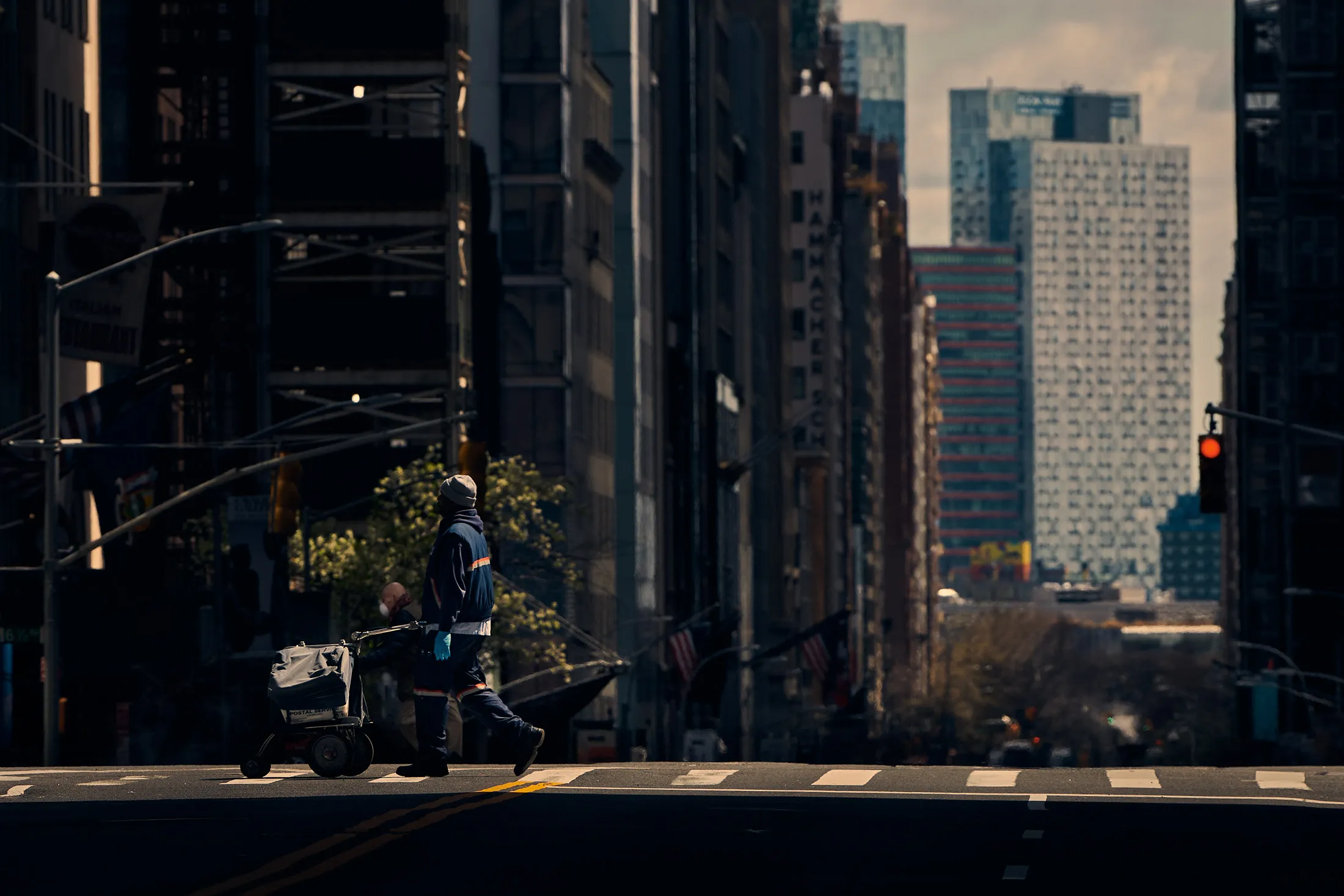 4月4日,一名邮递员在曼哈顿中城的工作中。