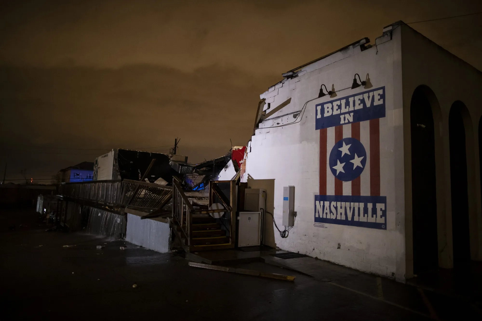 3月3日,东纳什维尔社区在龙卷风经过后遭受严重损害。