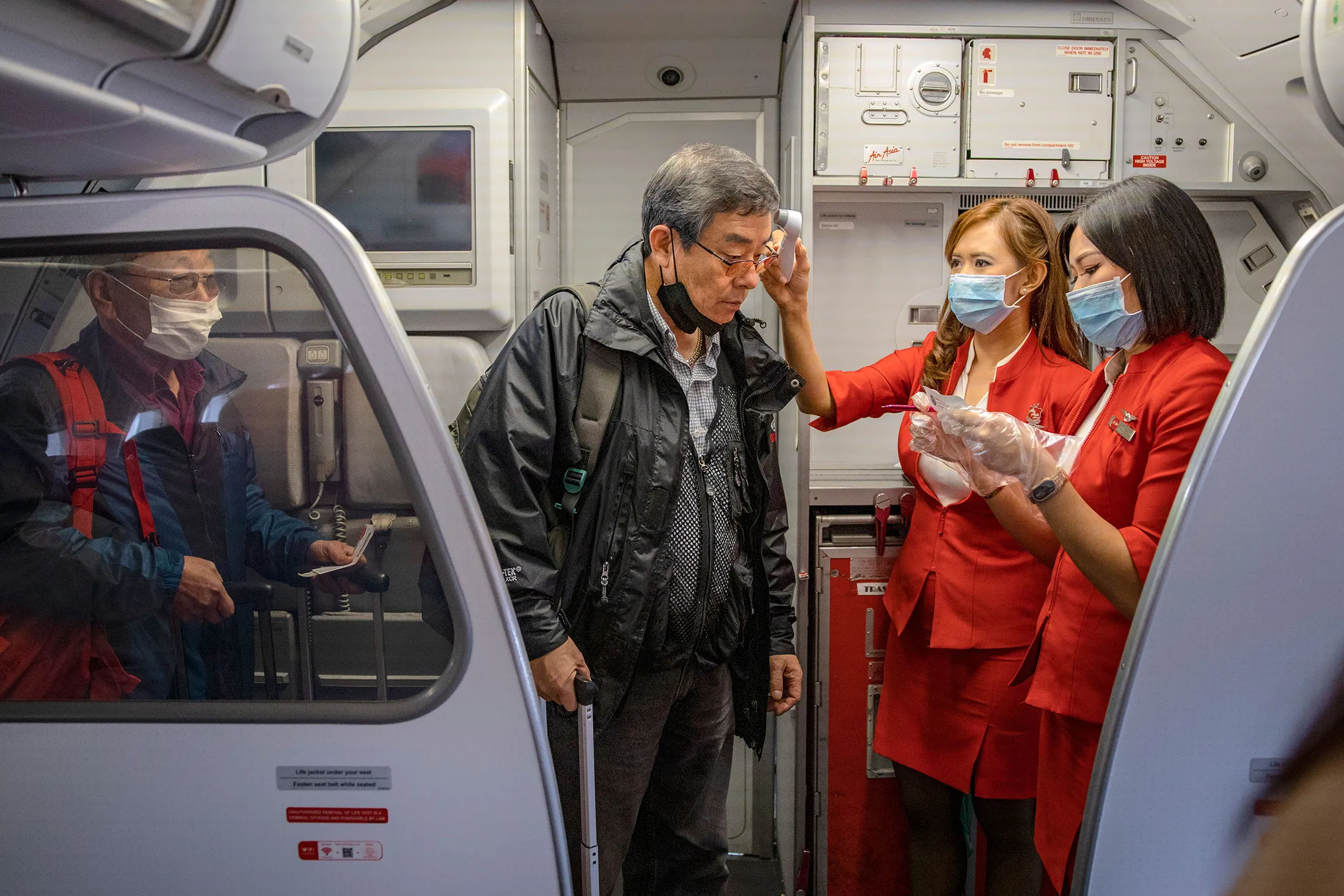 亚航员工在3月10日从马尼拉飞往韩国仁川的航班前记录乘客的体温。摄影师:埃兹拉·阿卡扬/盖蒂图片社竞争对手也在寻求资金以渡过难关。新加坡航空有限公司的预算单位酷航直接与亚航竞争,上个月表示将通过出售新股和可转换债券筹集约88亿新元(62亿美元),这一计划得到了新加坡主权财富基金淡马锡控股私人有限公司的支持,该公司是航空公司的最大股东。而韩国正在考虑一项价值3000亿韩元(2.46亿美元)的紧急贷款计划以及对其受到病毒冲击的折扣航空公司的机场费用延期。