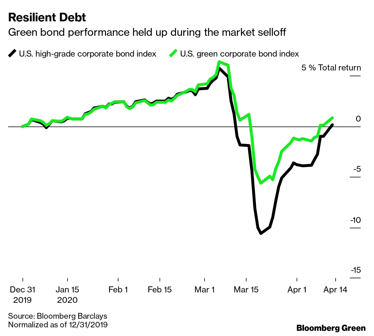 彭博社绿色海伦·邓普斯对缺乏洪水保险的数百万美国家庭泼冷水拯救美国景观的竞赛,一次一颗种子致命飓风海伦的洪水为何在登陆前几天就开始了海伦造成21人死亡,释放洪水并切断数百万人的电力绿色债券的表现暗示,至少在市场下行时,它们可能能够提供“绿色溢价”。瑞银分析师在三月底表示,他们预计绿色债券在压力市场期间将显示“较低的波动性和较小的回撤”,到目前为止,这一预期得到了验证。瑞银信用研究负责人托马斯·瓦克表示,绿色债券“已被证明是一种更具防御性的投资级债务投资方式”。他说,债券在市场下跌中表现优于其他债务,但随着中央银行开始购买其他类型的公司债务,差距缩小了。