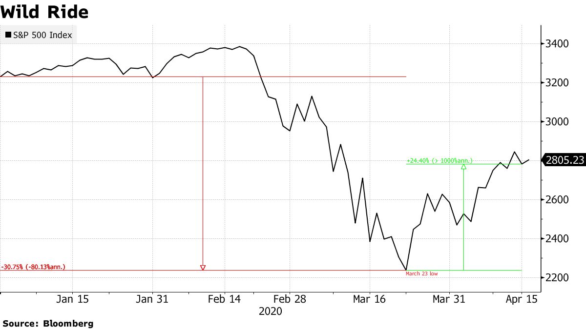 上个月的某个时刻,标准普尔500指数年初至今已下跌31%。自那时以来,股票强劲反弹,从3月23日的低点上涨了24%。
