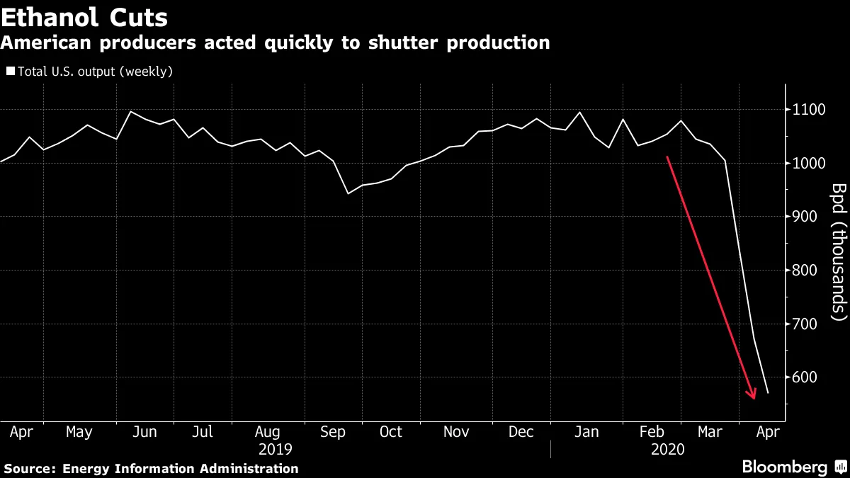 需求破坏正在严重伤害这个行业——根据上周的一项研究,在乙醇主要州爱荷华州造成了约25亿美元的损失。虽然价格仍然处于正面,但许多生产者的利润已经转为负数。随着原油价格跌至零以下,这表明生物燃料的情况在未来一段时间内将继续痛苦。