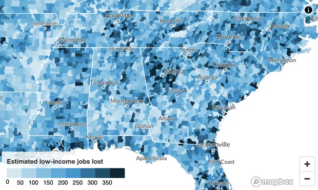 在乔治亚州,食品、零售和酒店行业的工人占据了创纪录的新失业索赔的巨大部分。来自城市研究所的新研究显示,酒店和食品服务行业的失业损失几乎在该州的每个地方都处于领先地位,低工资工作损失集中在亚特兰大、布伦瑞克、萨凡纳和斯泰茨伯勒的都市区。