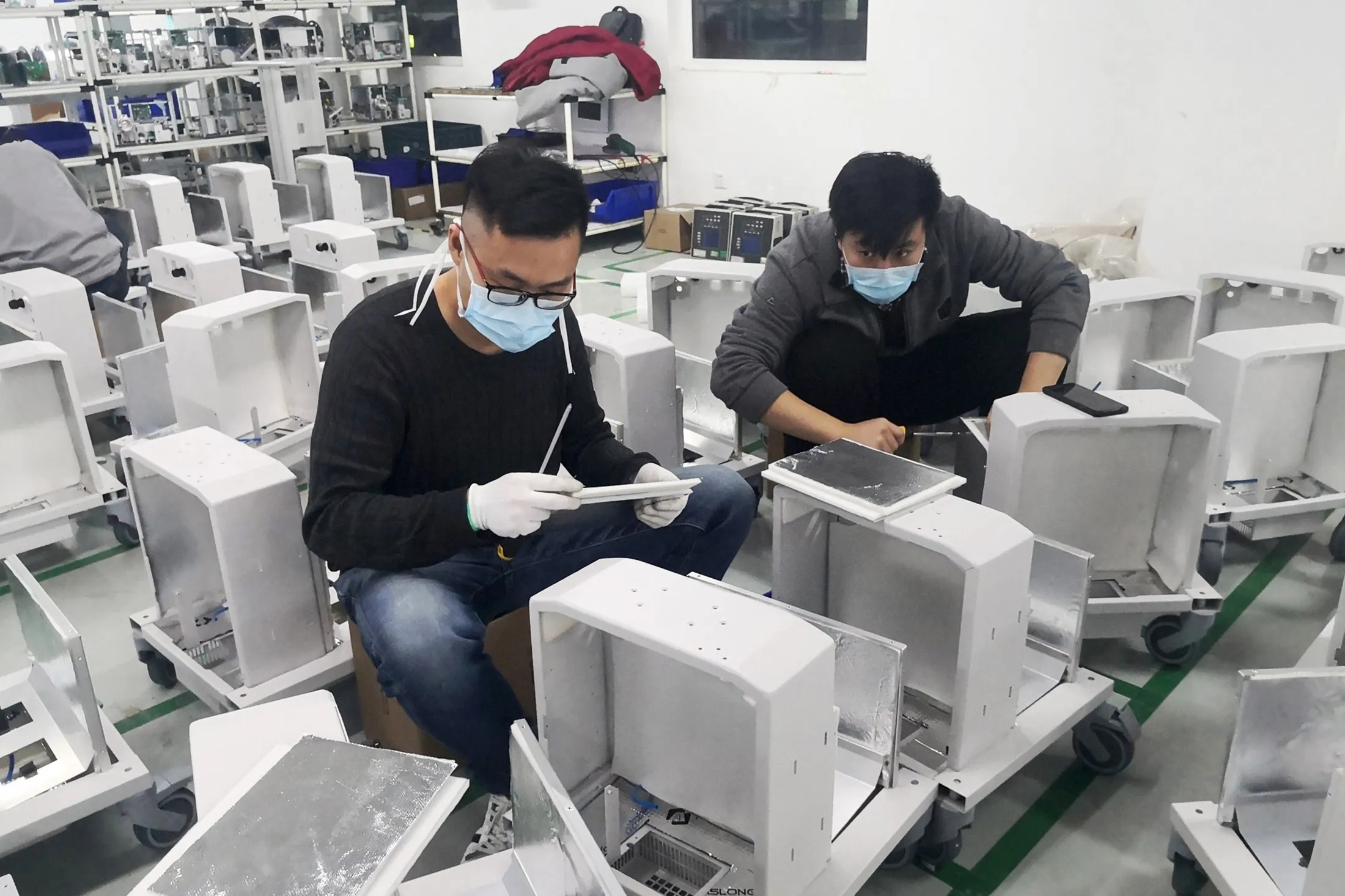 员工在中国三河的北京Aeonmed工厂组装呼吸机。来源:北京Aeonmed有限公司。尽管中国仅生产全球五分之一的侵入性呼吸机,但潜在的买家已转向该国,因为它是迄今为止唯一一个接近恢复正常制造的大型经济体。