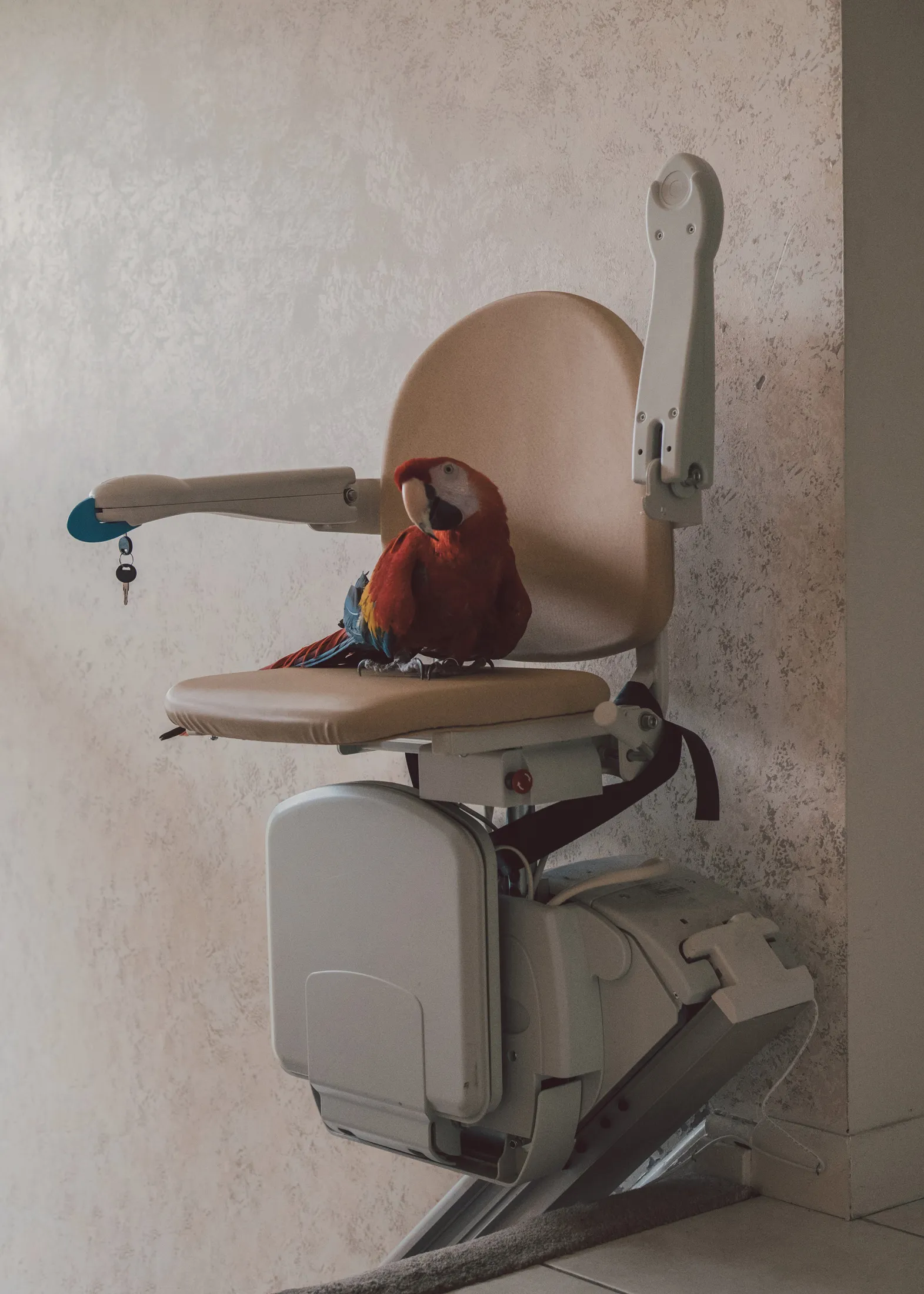阿诺德·哈伯心爱的鹦鹉,鲁比,在家里的楼梯升降椅上。摄影师:内森·巴贾尔为彭博社“我们是否缺乏沟通?是的,我们确实缺乏,”皮特斯基说。“因为我让首席执行官去铺床。我让所有人都参与进来。”