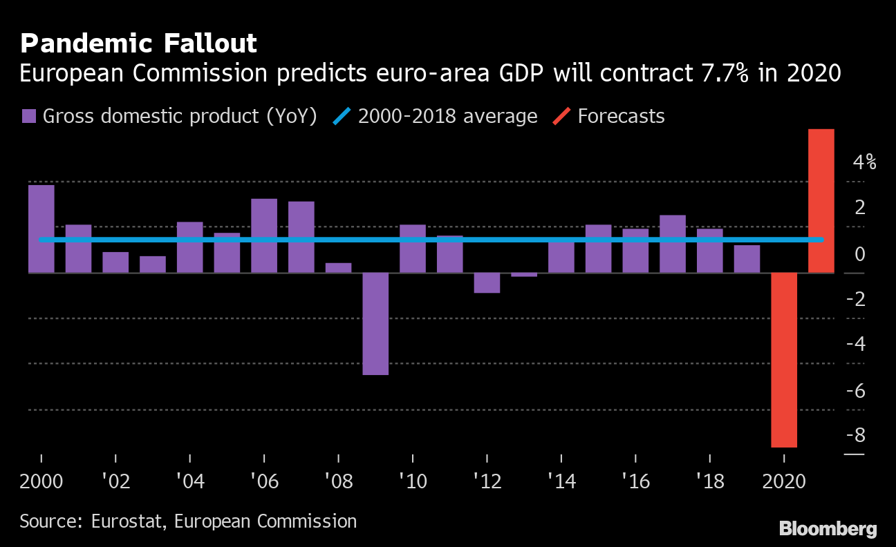虽然特朗普试图将对美国经济的损害降到最低,但欧洲方面,欧洲委员会今天早上发布的预测显示,欧元区地区今年将出现创纪录的7.7%的收缩。 共同货币区内各国之间的增长率差异可能会将欧元的未来置于风险之中,它警告说。昨天德国法院的裁决也增加了对欧洲央行的反应是否能保持有效性的疑虑。