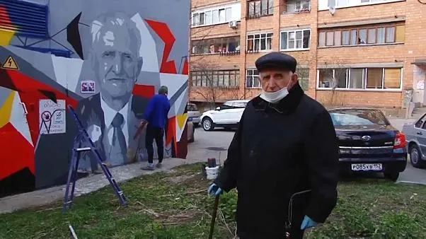 **受到英雄的启发。**俄罗斯西部的街头艺术家正在建筑物上绘制75幅二战老兵的巨型肖像,作为永久的礼物,以纪念即将到来的战争结束75周年。