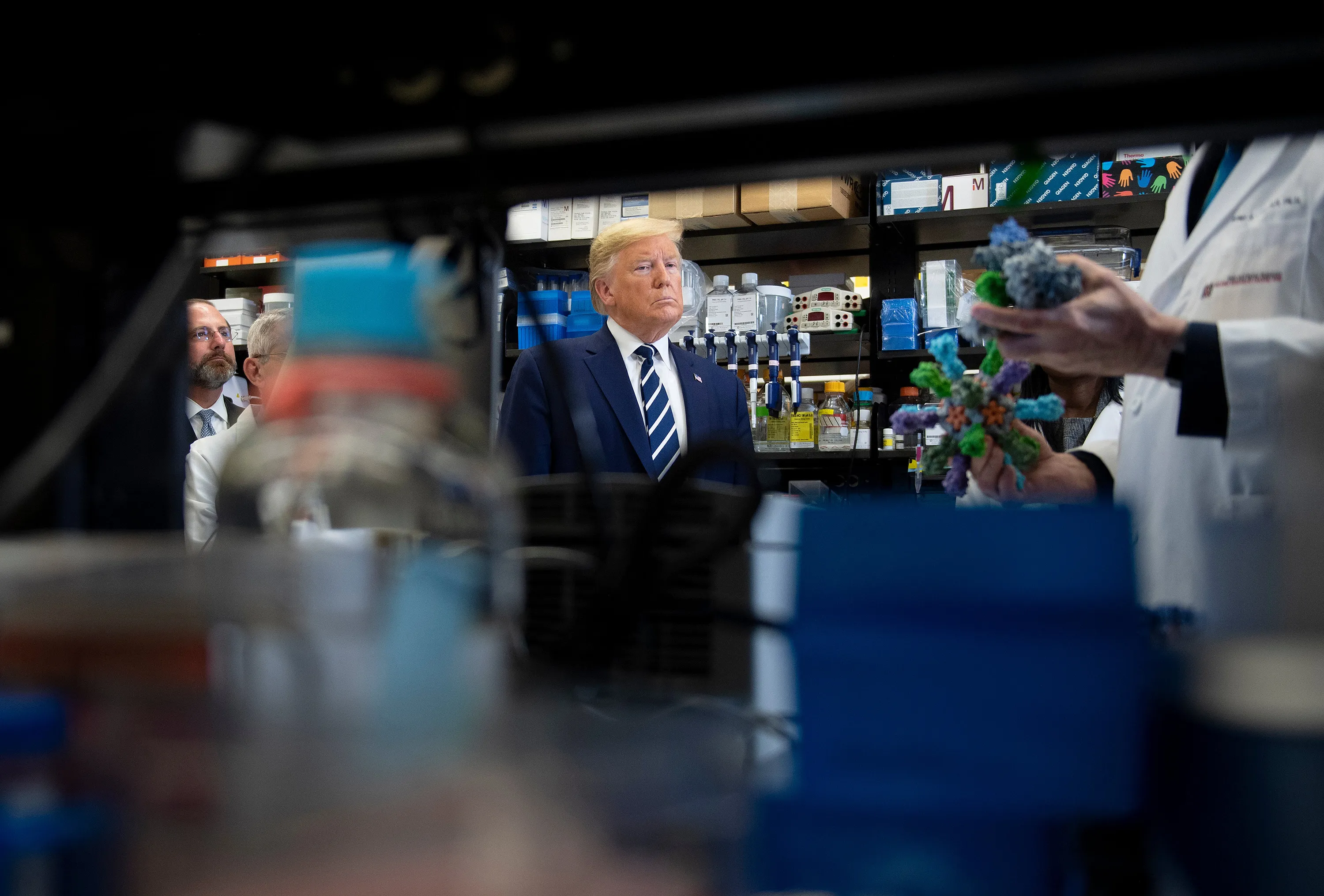 唐纳德·特朗普在马里兰州贝塞斯达国家卫生研究院疫苗研究中心参观时观看。摄影师:布伦丹·斯米亚洛夫/法新社寻找针对冠状病毒的疫苗的赌注无比高昂。在短短几个月内,这种疾病已经夺去了超过25万人的生命,并摧毁了全球经济。